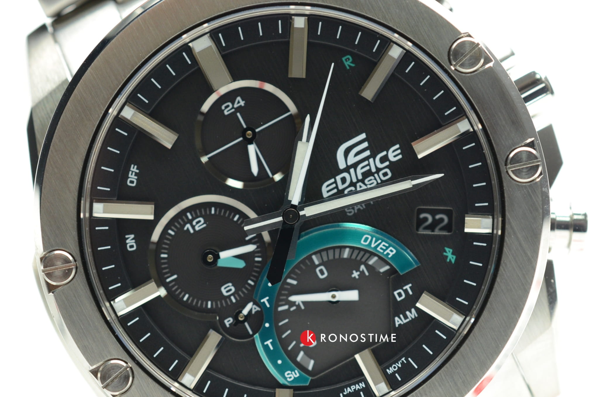 Ярко-бирюзовые цветовые акценты счётчиков гармонируют с тёмным фоном. Часы выполнены в спортивном стиле, ссылаясь на дизайн эксклюзивных спорткаров и автомобильных деталей. Они основаны на технологии , оснащены расширенными функциональными возможностями: BluetoothBluetoothСовременная технология, позволяющая синхронизировать часы с телефоном и переносить данные. Часы с Bluetooth расширяют возможности вашего смартфона и делают его использование ещё более удобным. нового поколения с низким потреблением энергии, автоматический календарь, хронографХронографФункция позволяет измерять отрезки времени с особой точностью: часы, минуты, секунды. Верным признаком хронографа является наличие на циферблате 3 дополнительных окошек-счётчиков., секундомер, индикатор последнего круга дистанции Last Lap Indicator, мировое время. Модель комплектуется надёжным браслетом из нержавеющей стали. Заводная головка с защитой. Ударопрочный корпусУдаропрочный корпусМеханизм заключён в корпус, выполненный из современных материалов, устойчивых к ударам, механическим повреждениям и падению с высоты: инновационный пластик, карбон, нержавеющая сталь, титан.. Сапфировое стекло с антибликовым покрытием. Водонепроницаемость WR 100. Подсветка NeobriteПодсветка NeobriteИспользование светонакопительных составов на основе сульфида цинка или алюмината стронция, яркий свет можно наблюдать на протяжении 6-10 часов после «зарядки» часов около источника света.. Габариты: 49,9 x 45,6 x 8,9 мм.