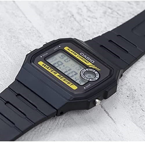 Электронные часы в чёрном исполнении напоминают первые модели от Casio благодаря винтажному 8-угольному ударопрочному корпусуУдаропрочный корпусМеханизм заключён в корпус, выполненный из современных материалов, устойчивых к ударам, механическим повреждениям и падению с высоты: инновационный пластик, карбон, нержавеющая сталь, титан., сделанному из надёжного пластика. Аксессуар с кварцевым механизмом работает от батарейки, характеризующейся высоким сроком службы - до 7 лет. Циферблат оснащён светодиодной микроподсветкойСветодиодная подсветкаСветодиодная или LED-подсветка обеспечивает появление яркого холодного свечения за счёт LED-элементов - маленьких лампочек. Они потребляют минимальное количество энергии, чаще всего можно встретить 1 светодиод, в нижней части циферблата., освещающей его сбоку. Органическое стекло легко полируется. Гибкий полимерный ремешок. Ежедневный будильник, секундомер, автоматический календарь, 12 и 24-х часовое отображение времени. Габариты: 33,2 x 38 x 8,5 мм.