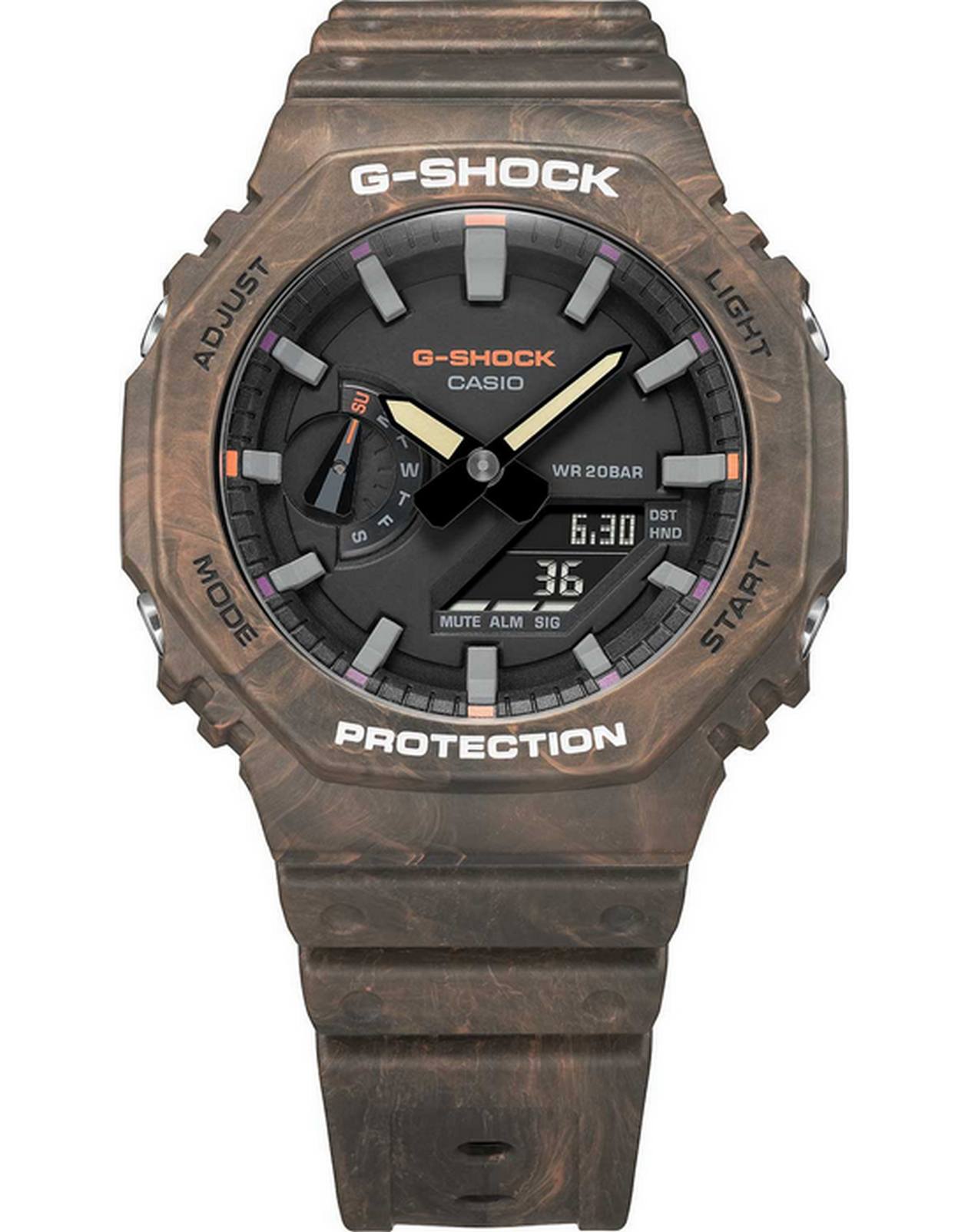 Японские мужские наручные часы Casio G-SHOCK GA-2100FR-5AER с хронографом Casio G-Shock GA-2100FR-5A, электронный механизм с высокой точностью. Класс водозащиты: 200 метров, позволит плавать, нырять и заниматься другими водными видами спорта. Корпус часов изготовлен из пластика, цвета.
