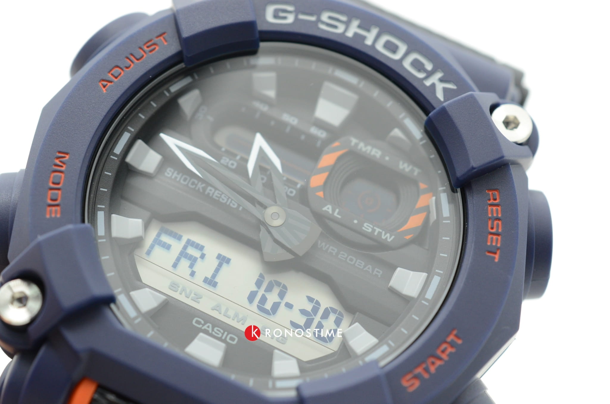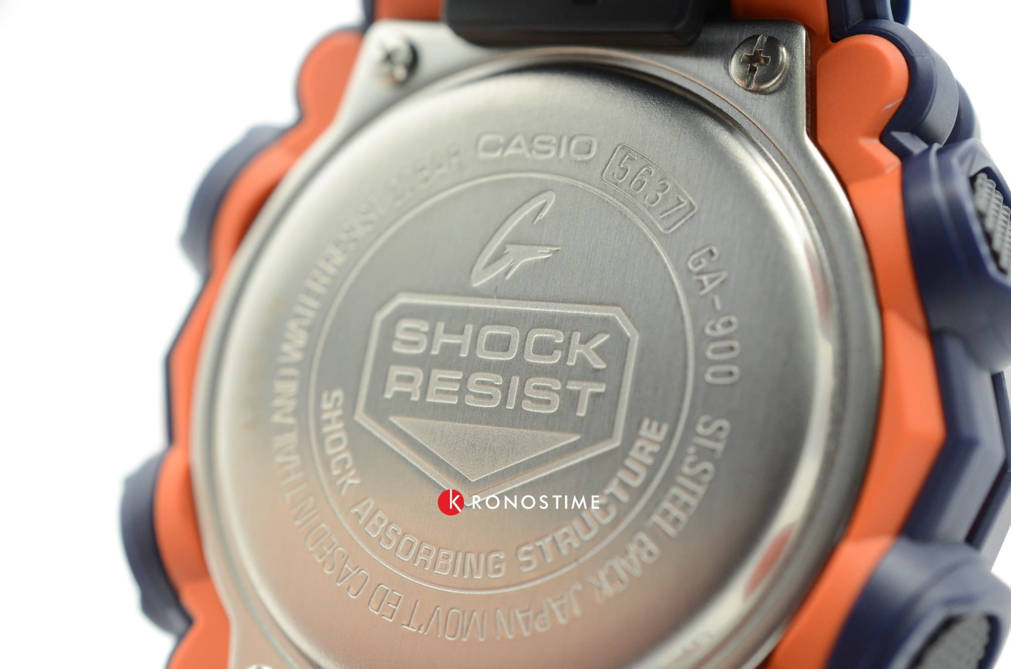 Японские мужские часы c хронографомХронографФункция позволяет измерять отрезки времени с особой точностью: часы, минуты, секунды. Верным признаком хронографа является наличие на циферблате 3 дополнительных окошек-счётчиков. Casio G-Shock GA-900-2AER предназначены для использования в экстремальных условиях. Аксессуар стал отражением уличной моды, стильный безельБезельВнешний ободок, закрепляющий стекло. В спортивных часах так называется поворотное кольцо с делениями на циферблате, выполняет роль таймера – замеряет отрезки времени на шкале. Неподвижный безель – элемент декора. Однонаправленно вращающийся безель на дайверских часах позволяет фиксировать моменты погружения и выныривания на поверхность. выполнен в форме гайки. Противоударный корпусУдаропрочный корпусМеханизм заключён в корпус, выполненный из современных материалов, устойчивых к ударам, механическим повреждениям и падению с высоты: инновационный пластик, карбон, нержавеющая сталь, титан. из пластика защищает японский кварцевый механизм от ударов, повреждений и вибрации. Полимерный ремешок имеет усиленное комбинированное крепление. Герметичность конструкции сохраняется при давлении до 20 бар. Ударопрочный корпусУдаропрочный корпусМеханизм заключён в корпус, выполненный из современных материалов, устойчивых к ударам, механическим повреждениям и падению с высоты: инновационный пластик, карбон, нержавеющая сталь, титан. защищает механизм от ударов и вибрации. Циферблат подсвечивается ярким светодиодомСветодиодная подсветкаСветодиодная или LED-подсветка обеспечивает появление яркого холодного свечения за счёт LED-элементов - маленьких лампочек. Они потребляют минимальное количество энергии, чаще всего можно встретить 1 светодиод, в нижней части циферблата.. Цвет подсветки: белый. Подсветка NeobriteПодсветка NeobriteИспользование светонакопительных составов на основе сульфида цинка или алюмината стронция, яркий свет можно наблюдать на протяжении 6-10 часов после «зарядки» часов около источника света. обеспечивает длительное послесвечение в темноте даже после кратковременного нахождения на свету. 12-ти и 24-х часовой формат времени. СекундомерСекундомерСекундоме́р — прибор, способный измерять интервалы времени с точностью до долей секунды. с точностью показаний 1/100с и временем измерения 24ч. Сплит-хронографСплит-хронографИспользуется для измерения продолжительности нескольких временных отрезков, начинающихся одновременно, а заканчивающихся в разное время.. ТаймерТаймерОтсчитывает секунды в обратном направлении в заданном интервале времени. обратного отсчета от 1с до 60мин. Мировое времяМировое время Полезное часовое усложнение, отображающее время в основных городах и известных областях по всему миру, оно связано с часовыми поясами, удобно для путешественников и бизнесменов. – 48 городов (31 часовой пояс), всемирное координированное время (UTCUTCВсемирное кординационное время, не имеющее привязки к географическому положению Гринвича, основывается на атомном отсчёте времени. Регулировка времени осуществляется более точно, чем устаревшее GMT.