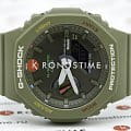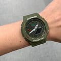 Японские мужские часы-хронографХронографФункция позволяет измерять отрезки времени с особой точностью: часы, минуты, секунды. Верным признаком хронографа является наличие на циферблате 3 дополнительных окошек-счётчиков. Casio G-Shock GA-B2100FC-3A. Супер стильная обновленная расцветка в одном из самых популярных корпусов G-Shock последних лет. Харизматичная модель в матовом оливковом корпусе с контрастными стрелками и яркими деталями циферблата из серии GA-B2100 сохранила внешний облик своих предшественников по серии GA-2100, но получила более технологичный модуль с блютус синхронизацией со смартфоном и Tough SolarTough SolarТехнология основана на подзарядке аккумулятора от источника солнечного света, специальная панель улавливает солнечные лучи и преобразует их в энергию для работы часов. Достаточно пары минут нахождения на солнце для функционирования часов в течении суток.. Минеральное стеклоМинеральное стеклоМинеральное стекло представляет собой искусственно выращенный минерал кварца. Такое стекло отличается особой устойчивостью к повреждениям и царапинам. Уступает по некоторым качествам сапфировому стеклу. устойчивое к появлению царапин, обладающее высокой прозрачностью. Ударопрочный корпусУдаропрочный корпусМеханизм заключён в корпус, выполненный из современных материалов, устойчивых к ударам, механическим повреждениям и падению с высоты: инновационный пластик, карбон, нержавеющая сталь, титан. Carbon Core GuardCarbon Core Guard Новейшая структура корпуса, разработанная Casio. Полиуретановая пластина дополнительно усилена карбоновыми вставками, что придаёт специальную защиту от механических повреждений. Карбон отличается лёгкостью и прочностью.. Светодиодная подсветкаСветодиодная подсветкаСветодиодная или LED-подсветка обеспечивает появление яркого холодного свечения за счёт LED-элементов - маленьких лампочек. Они потребляют минимальное количество энергии, чаще всего можно встретить 1 светодиод, в нижней части циферблата. освещает весь циферблат, после отпускания кнопки свечение продолжается еще некоторое время. Настраиваемое послесвечение 1,5 или 3сек. Мировое время Мировое время Полезное часовое усложнение, отображающее время в основных городах и известных областях по всему миру, оно связано с часовыми поясами, удобно для путешественников и бизнесменов. 38 городов (38 часовых поясов), всемирное координированное время UTCUTCВсемирное кординационное время, не имеющее привязки к географическому положению Гринвича, основывается на атомном отсчёте времени. Регулировка времени осуществляется более точно, чем устаревшее GMT.