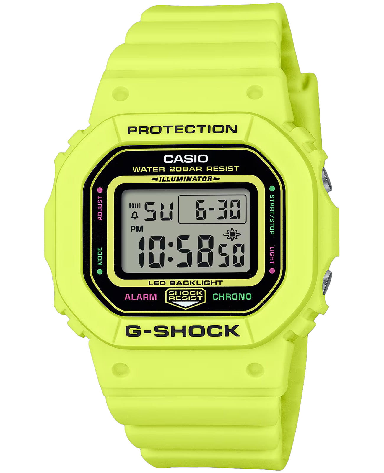 Японские часы с таймеромТаймерОтсчитывает секунды в обратном направлении в заданном интервале времени. Casio G-Shock GMD-S5600EP-9, кварцевый механизм с высокой точностью. Класс водозащиты: 200 метров, позволит плавать, нырять и заниматься другими водными видами спорта. Корпус и браслет часов изготовлен из пластика. Пластиковый ремешок на стандартной застёжке. Модель имеет пять независимых будильниковБудильникБуди́льник — часы, в заданный момент времени подающие звуковой, световой и/или в редких случаях другой сигнал. для оповещения. Минеральное стеклоМинеральное стеклоМинеральное стекло представляет собой искусственно выращенный минерал кварца. Такое стекло отличается особой устойчивостью к повреждениям и царапинам. Уступает по некоторым качествам сапфировому стеклу. устойчивое к мелким механическим повреждениям. Светодиодная подсветкаСветодиодная подсветкаСветодиодная или LED-подсветка обеспечивает появление яркого холодного свечения за счёт LED-элементов - маленьких лампочек. Они потребляют минимальное количество энергии, чаще всего можно встретить 1 светодиод, в нижней части циферблата. освещает весь циферблат. После первичной настройки автоматический вечный календарьВечный календарьКлассическое часовое усложнение, представляющее собой календарь, рассчитанный на несколько лет вперёд (стандартно – до 2099 года). Определяет текущую дату, день недели, месяц. всегда отображает точную дату. СекундомерСекундомерСекундоме́р — прибор, способный измерять интервалы времени с точностью до долей секунды. измеряется прошедшее время с точностью в 1/100 секунды, пределы измерения достигают 24 часов.