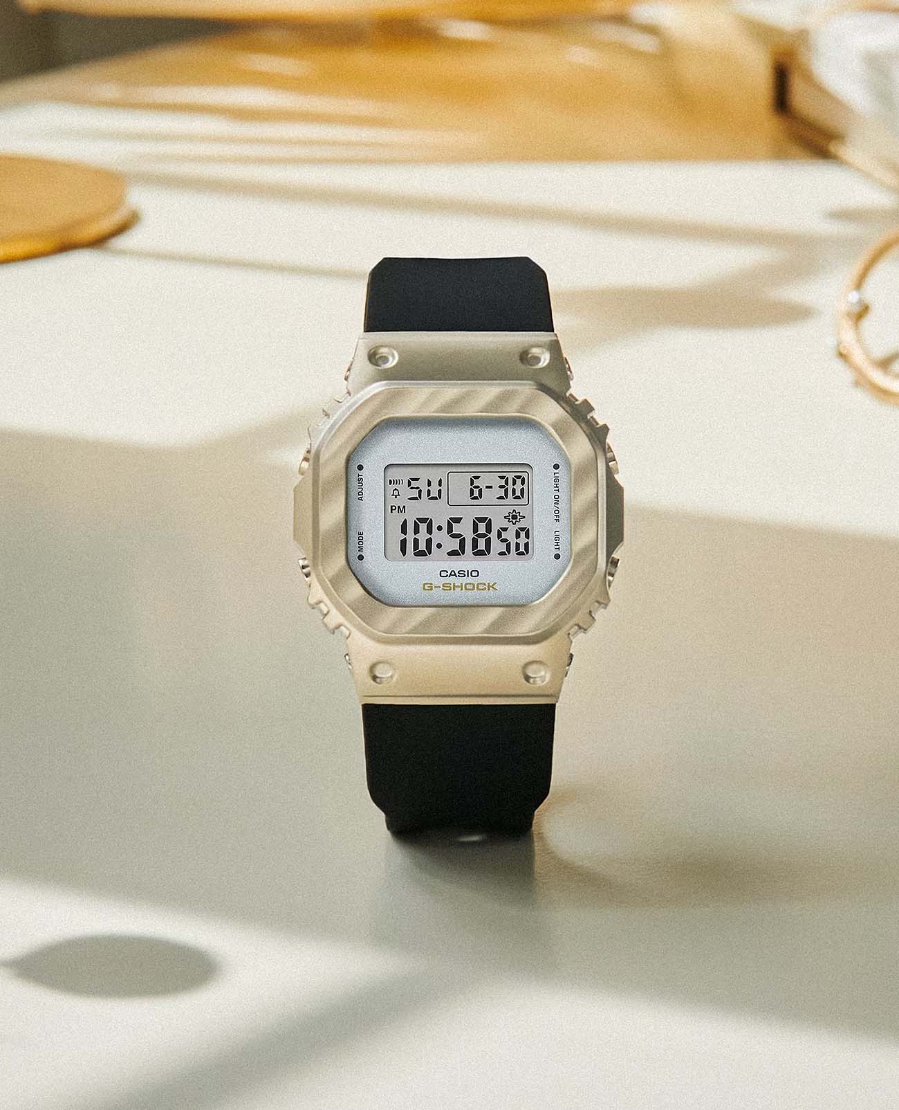 Японские женские часы-хронографХронографФункция позволяет измерять отрезки времени с особой точностью: часы, минуты, секунды. Верным признаком хронографа является наличие на циферблате 3 дополнительных окошек-счётчиков. Casio G-Shock GM-S5600BC-1. Передовая технология ковки придает металлическому безелюБезельВнешний ободок, закрепляющий стекло. В спортивных часах так называется поворотное кольцо с делениями на циферблате, выполняет роль таймера – замеряет отрезки времени на шкале. Неподвижный безель – элемент декора. Однонаправленно вращающийся безель на дайверских часах позволяет фиксировать моменты погружения и выныривания на поверхность., теперь более светлого желто-золотого цвета, вид драпированной ткани. Благодаря ярко контрастирующему черному ремешку, элегантному и изысканному дизайну эти часы займут достойное место в вашей шкатулке для украшений. Минеральное стеклоМинеральное стеклоМинеральное стекло представляет собой искусственно выращенный минерал кварца. Такое стекло отличается особой устойчивостью к повреждениям и царапинам. Уступает по некоторым качествам сапфировому стеклу. устойчивое к появлению царапин, обладающее высокой прозрачностью. Ударопрочный корпусУдаропрочный корпусМеханизм заключён в корпус, выполненный из современных материалов, устойчивых к ударам, механическим повреждениям и падению с высоты: инновационный пластик, карбон, нержавеющая сталь, титан. с IP-покрытиемIP-покрытиеМетод ионного напыления. Демонстрирует повышенную устойчивость к истиранию, окислению и химическим веществам. Под воздействием высокого давления и температуры около 1500°C молекулы металла надёжно соединяются с частицами корпуса часов. защищает механизм от ударов и вибрации. Светодиодная подсветкаСветодиодная подсветкаСветодиодная или LED-подсветка обеспечивает появление яркого холодного свечения за счёт LED-элементов - маленьких лампочек. Они потребляют минимальное количество энергии, чаще всего можно встретить 1 светодиод, в нижней части циферблата. освещает весь циферблат, после отпускания кнопки свечение продолжается еще некоторое время. Настраиваемое послесвечение 1,5 или 3сек. СекундомерСекундомерСекундоме́р — прибор, способный измерять интервалы времени с точностью до долей секунды. с точностью измерения 1/100 секунды и измерением до 23 часов 59 минут 59,99 cек. ТаймерТаймерОтсчитывает секунды в обратном направлении в заданном интервале времени. обратного отсчета (диапазон времени 24 часа), автоматический календарь, 12/24 отображение времени. будильникБудильникБуди́льник — часы, в заданный момент времени подающие звуковой, световой и/или в редких случаях другой сигнал., ежечасный сигнал. Батарея рассчитана на 3 года. Класс водозащиты: 200 метров, позволит плавать, нырять и заниматься другими водными видами спорта. Ремешок из полимерного материала на стандартной застежке.