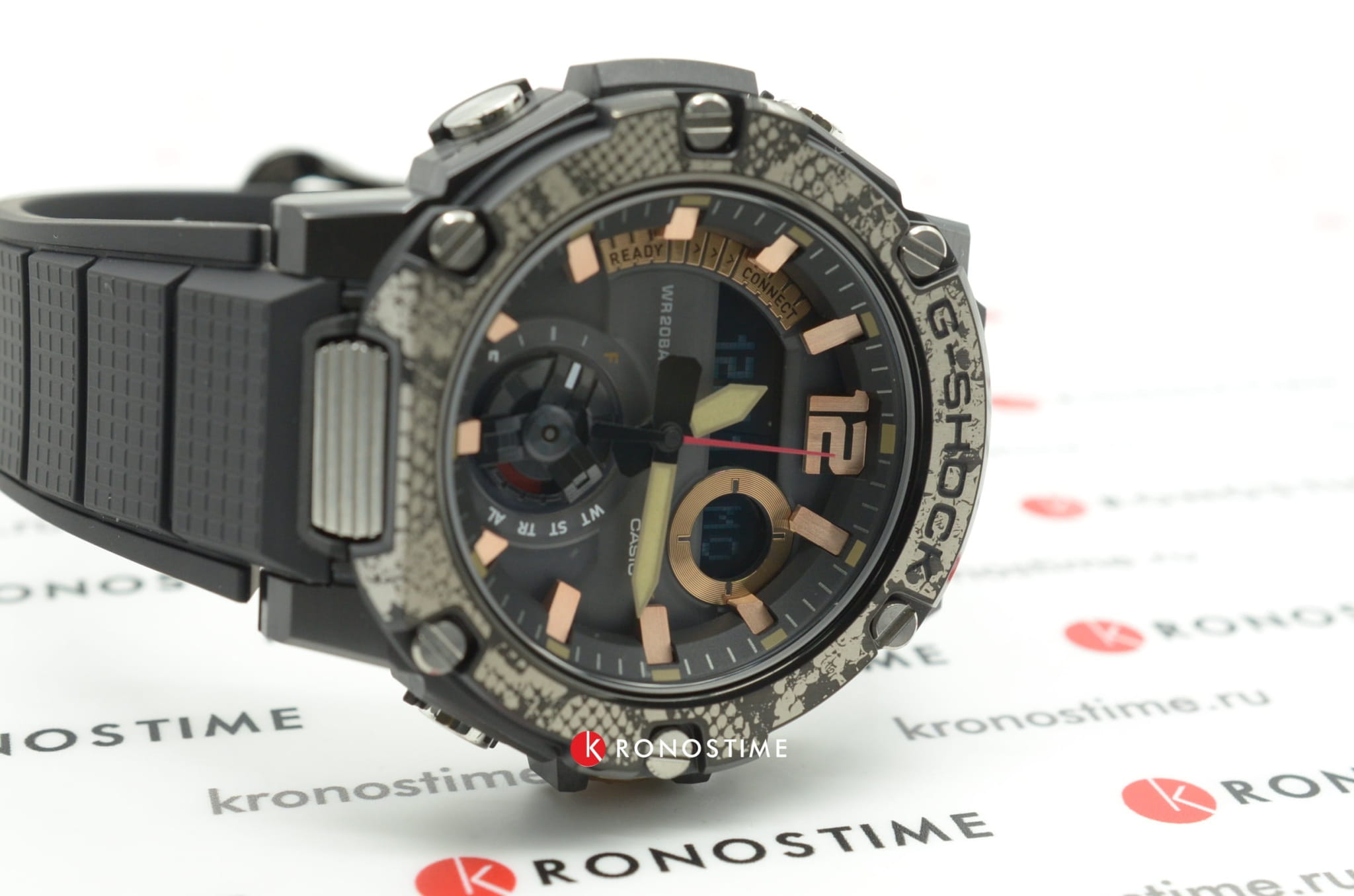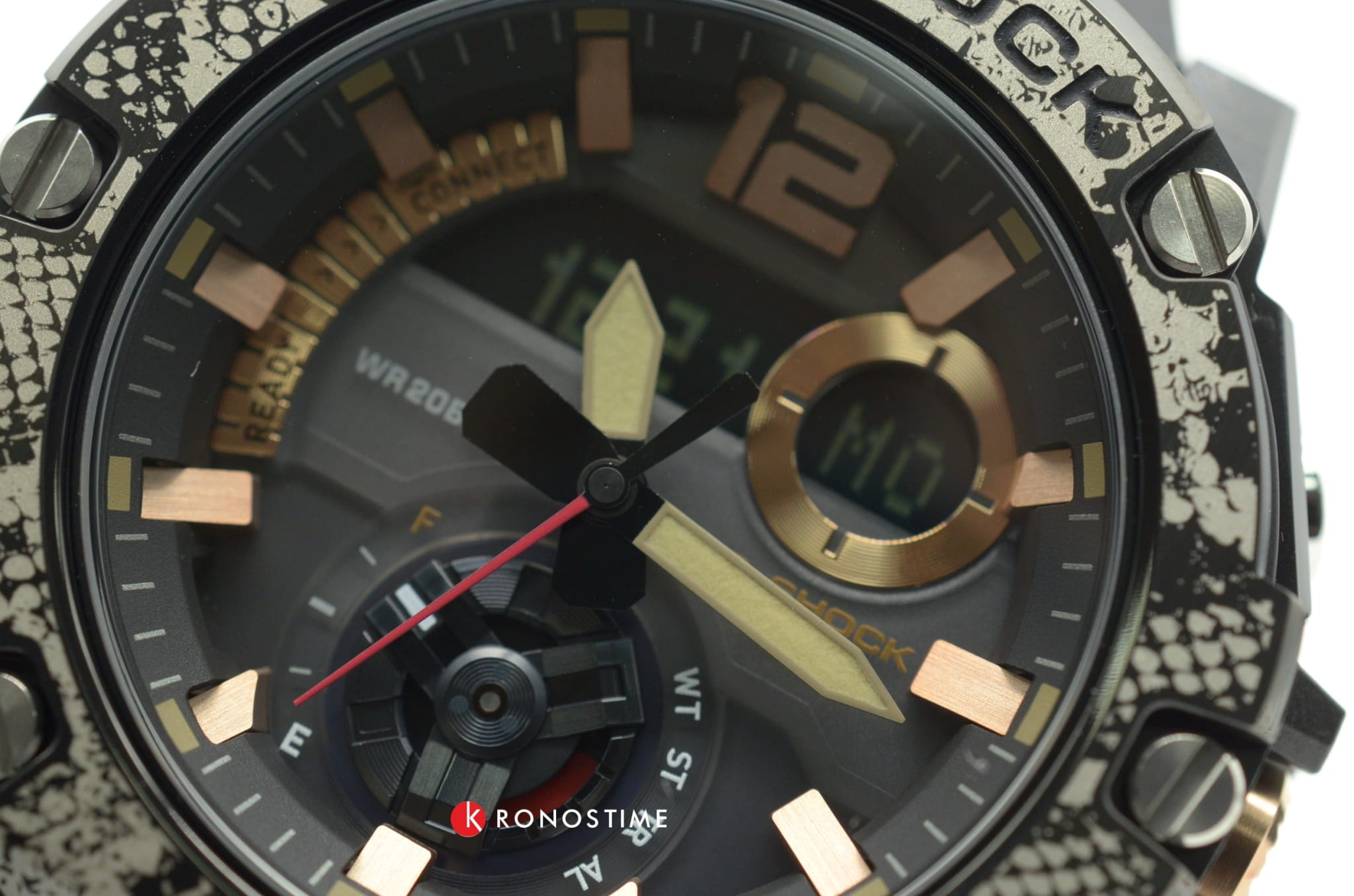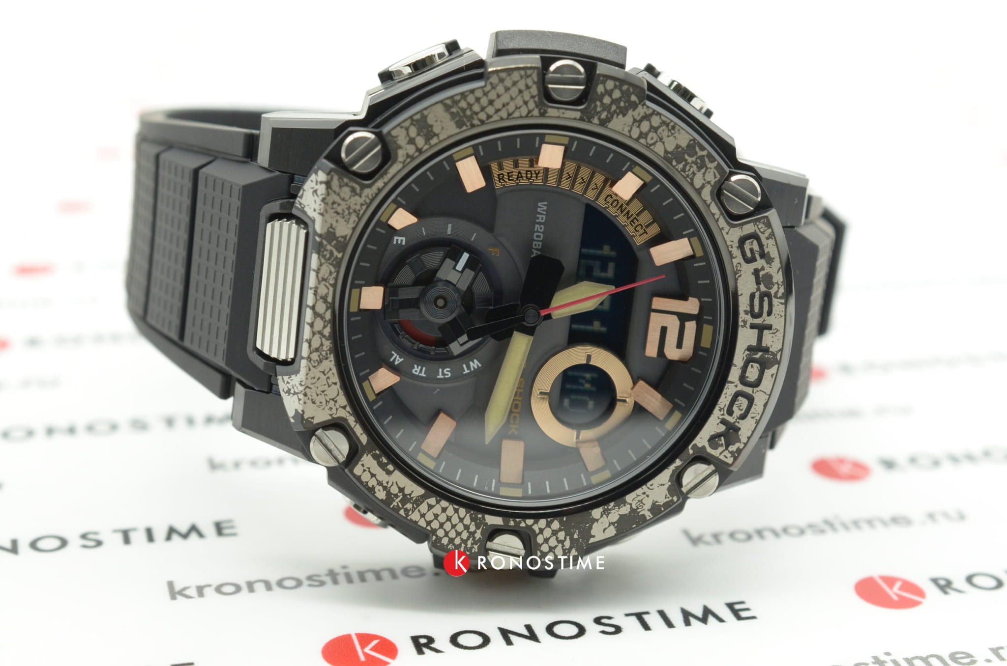 Японские мужские часы Casio G-Shock GST-B300WLP-1AER привлекают брутальным спортивным дизайном. Корпус имеет структуру Carbon Core GuardCarbon Core Guard Новейшая структура корпуса, разработанная Casio. Полиуретановая пластина дополнительно усилена карбоновыми вставками, что придаёт специальную защиту от механических повреждений. Карбон отличается лёгкостью и прочностью., что говорит о повышенной ударопрочности. БезельБезельВнешний ободок, закрепляющий стекло. В спортивных часах так называется поворотное кольцо с делениями на циферблате, выполняет роль таймера – замеряет отрезки времени на шкале. Неподвижный безель – элемент декора. Однонаправленно вращающийся безель на дайверских часах позволяет фиксировать моменты погружения и выныривания на поверхность. изготовлен из стали 316L. Японский кварцевый механизм отличается высокой точностью хода 15 +/- секунд в месяц. Часы оснащены инновационной технологией , синхронизация со смартфоном происходит с помощью BluetoothBluetoothСовременная технология, позволяющая синхронизировать часы с телефоном и переносить данные. Часы с Bluetooth расширяют возможности вашего смартфона и делают его использование ещё более удобным.. Возможности: двойная автоматическая подсветка, мировое времяМировое время Полезное часовое усложнение, отображающее время в основных городах и известных областях по всему миру, оно связано с часовыми поясами, удобно для путешественников и бизнесменов. , будильник, хронографХронографФункция позволяет измерять отрезки времени с особой точностью: часы, минуты, секунды. Верным признаком хронографа является наличие на циферблате 3 дополнительных окошек-счётчиков., календарь, таймер.
