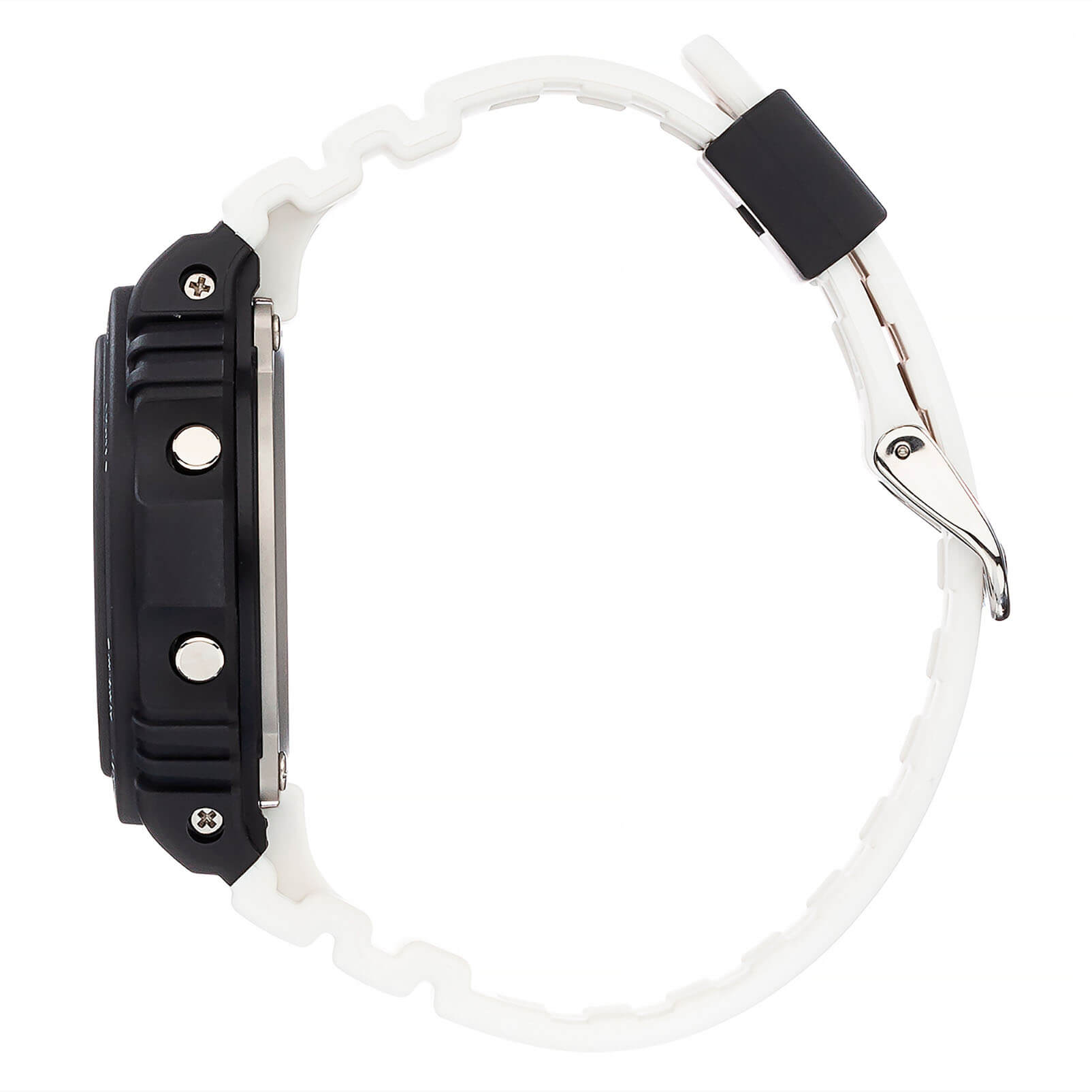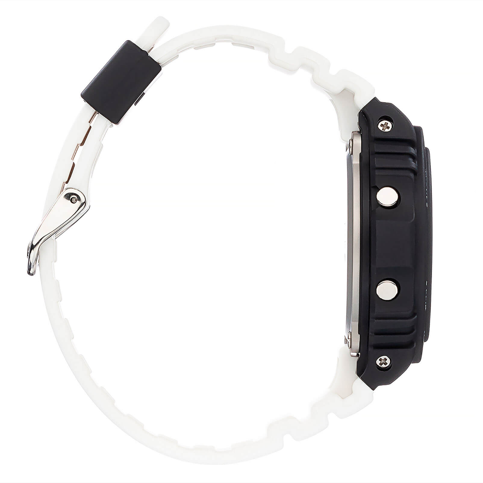 Электронные наручные часы в чёрно-белой цветовой гамме представляют собой современное исполнение знаменитого ударопрочного корпусаУдаропрочный корпусМеханизм заключён в корпус, выполненный из современных материалов, устойчивых к ударам, механическим повреждениям и падению с высоты: инновационный пластик, карбон, нержавеющая сталь, титан. 5700, по прототипу моделей 1987-го года. Они представлены в серии для серферов G-Shock G-Lide и помогают в выявлении идеальных погодных условий для покорения волн. Этому способствуют следующие функции: отображение фаз луны, график приливов и отливов, приём радиосигнала для корректировки времени, запись местоположения 100 сёрфинг-курортов, UTCUTCВсемирное кординационное время, не имеющее привязки к географическому положению Гринвича, основывается на атомном отсчёте времени. Регулировка времени осуществляется более точно, чем устаревшее GMT.