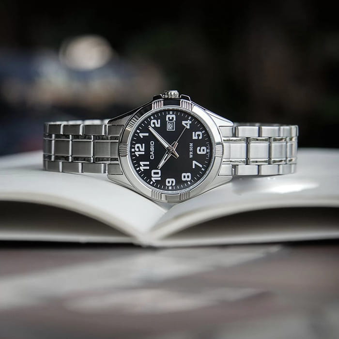 Японские женские часы из LTP-1308D-1B с минеральным стекломМинеральное стеклоМинеральное стекло представляет собой искусственно выращенный минерал кварца. Такое стекло отличается особой устойчивостью к повреждениям и царапинам. Уступает по некоторым качествам сапфировому стеклу. изящно смотрятся на запястье, они привлекают классическим исполнением и правильной геометрией. Минималистичная модель станет отличным решением для любого случая: на работу, переговоры с деловыми партнёрами, прогулку с друзьями или праздничный вечер. Отсутствуют лишние детали, что позволяет часам быть актуальными на долгие годы. Корпус выполнен из нержавеющей стали 316L, отличающейся долговечностью и устойчивостью к повреждениям и царапинам. Модель комплектуется надёжным механизмом, точность хода которого составляет +/- 20 сек/мес.Окошко даты находится в положении 3 часа. Циферблат с метками в виде арабских цифр.Стальной браслет на раскладной застёжкеРаскладная застёжкаТакой тип застёжки используется только на браслетах из металла. Она никогда не раскрывается полностью, происходит разделение на 2 и более частей. Раскладывающая застёжка снизит вероятность потери часов к минимуму..Стрелки с люминесцентным покрытиемЛюминесцентное покрытиеПозволяет считывать показания времени в темноте. Производители наносят на стрелки, часовые индексы, безель или поверхность циферблата светонакопительный состав, дающий холодное свечение..