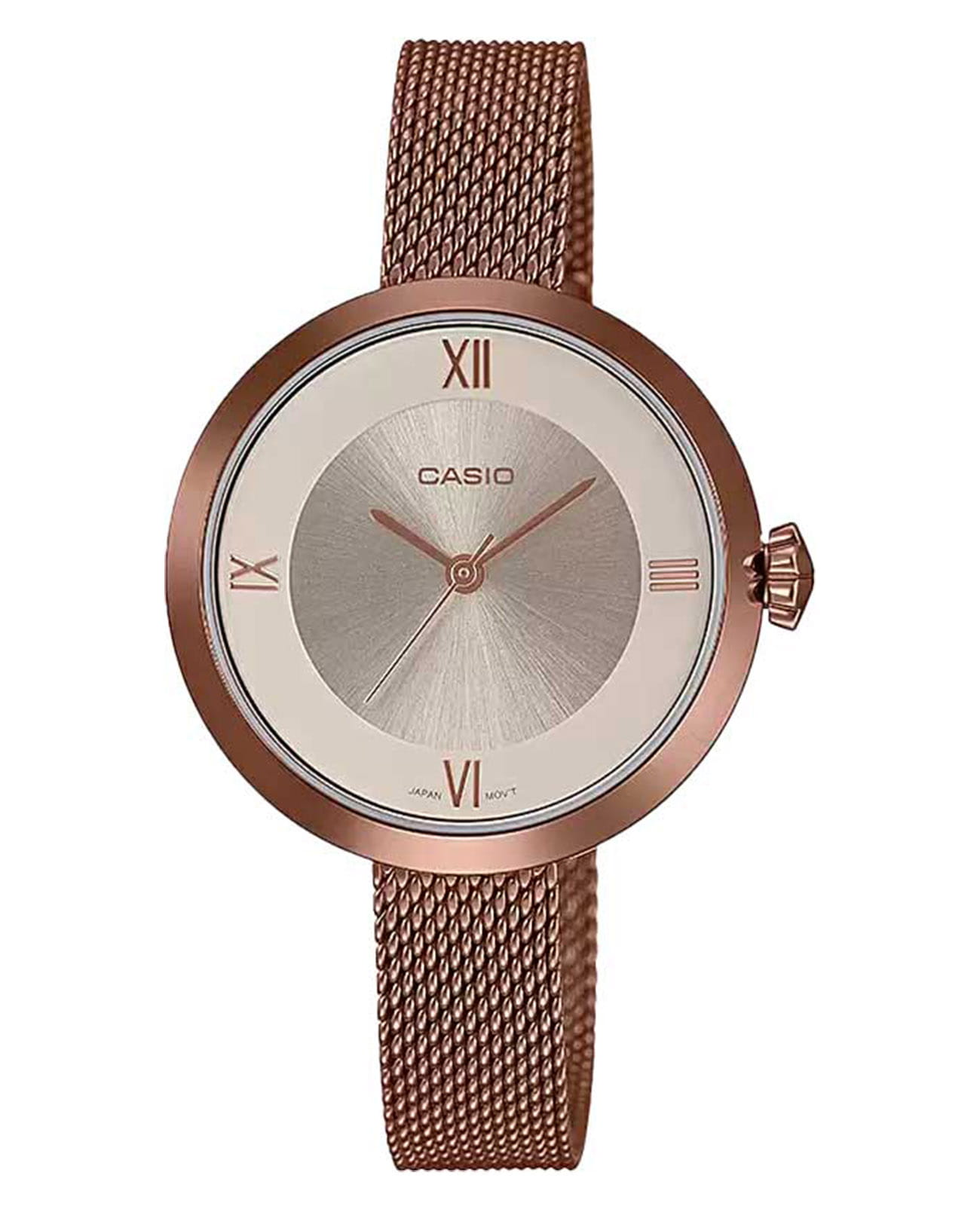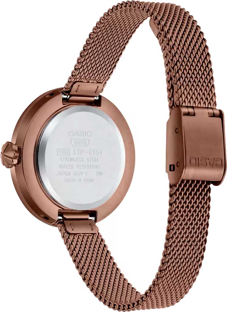 Японские женские часы LTP-E154MR-9A с минеральным стекломМинеральное стеклоМинеральное стекло представляет собой искусственно выращенный минерал кварца. Такое стекло отличается особой устойчивостью к повреждениям и царапинам. Уступает по некоторым качествам сапфировому стеклу. из коллекции LTP являются представителем линейки минималистичных и лаконичных моделей, подходящих для дополнения делового, повседневного образа, наряда для торжественных случаев.