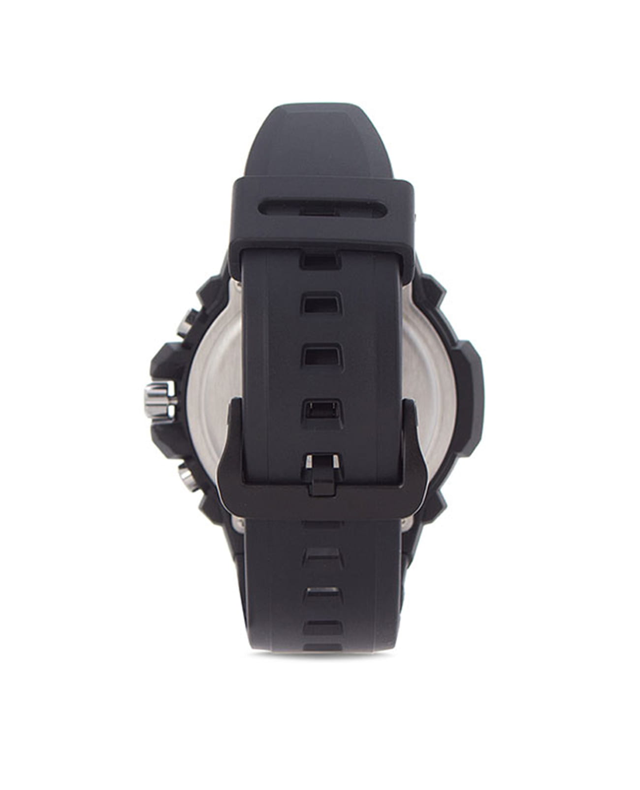 В часах имеется хронограф. Корпус и браслет черного цвета выполнены из высококачественных полимерных материалов. На дисплее отображается текущая дата. Изделие надежно защищено выпуклым акриловым стеклом. Высокая точность информации - прошедшее время отображается с точностью до доли секунды. Информация на дисплее четко видна даже в темное время суток благодаря неоновому покрытию. Высокая водонепроницаемость, которая составляет 10 Бар.