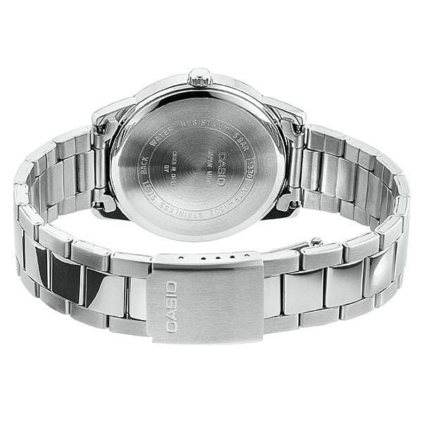 Мужские японские наручные часы Casio Collection MTP-1303D-2A с минеральным стекломМинеральное стеклоМинеральное стекло представляет собой искусственно выращенный минерал кварца. Такое стекло отличается особой устойчивостью к повреждениям и царапинам. Уступает по некоторым качествам сапфировому стеклу. умело сочетают в себе винтажные элементы и спортивный стиль, часы придутся по вкусу ценителям японского качества и лаконичности. Высокотехнологичный аксессуар обладает строгим стилем и традиционной формой циферблата. Сдержанные, классические цвета и плавные линии позволяют носить часы, не снимая, их универсальность идеально подходит для делового костюма, повседневной одежды или образа для вечернего выхода. Для корпуса использована нержавеющая сталь 316L, за счёт чего достигается повышенная устойчивость к повреждениям и ударам. Надежные часы которые прослужат много лет. Модель комплектуется надёжным механизмом, точность хода которого составляет +/- 20 сек/мес. Стальной браслет на раскладной застёжкеРаскладная застёжкаТакой тип застёжки используется только на браслетах из металла. Она никогда не раскрывается полностью, происходит разделение на 2 и более частей. Раскладывающая застёжка снизит вероятность потери часов к минимуму..