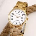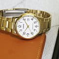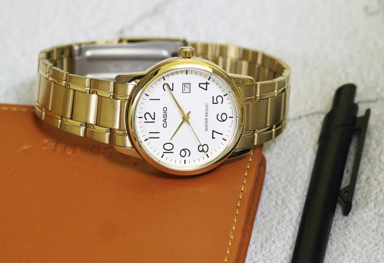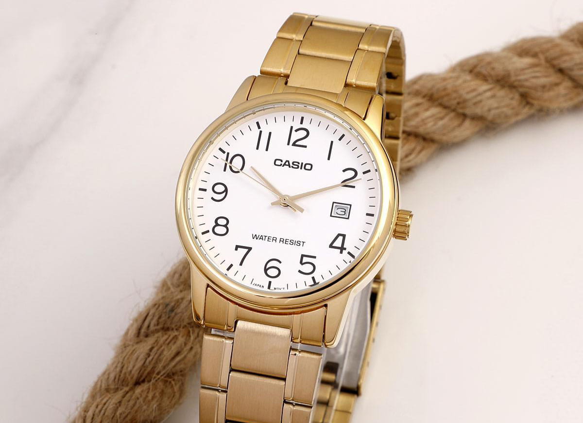 Японские мужские наручные часы с минеральным стекломМинеральное стеклоМинеральное стекло представляет собой искусственно выращенный минерал кварца. Такое стекло отличается особой устойчивостью к повреждениям и царапинам. Уступает по некоторым качествам сапфировому стеклу. Casio Collection MTP-V002G-7B2, кварцевый механизм с высокой точностью. Класс водозащиты: 30 метров, позволит защитить корпус от случайных брызг или капель дождя. Корпус часов изготовлен из стали с IP-покрытиемIP-покрытиеМетод ионного напыления. Демонстрирует повышенную устойчивость к истиранию, окислению и химическим веществам. Под воздействием высокого давления и температуры около 1500°C молекулы металла надёжно соединяются с частицами корпуса часов.. Стальной браслет на раскладной застёжкеРаскладная застёжкаТакой тип застёжки используется только на браслетах из металла. Она никогда не раскрывается полностью, происходит разделение на 2 и более частей. Раскладывающая застёжка снизит вероятность потери часов к минимуму. с IP-покрытиемIP-покрытиеМетод ионного напыления. Демонстрирует повышенную устойчивость к истиранию, окислению и химическим веществам. Под воздействием высокого давления и температуры около 1500°C молекулы металла надёжно соединяются с частицами корпуса часов.. Окошко даты находится в положении 3 часа.