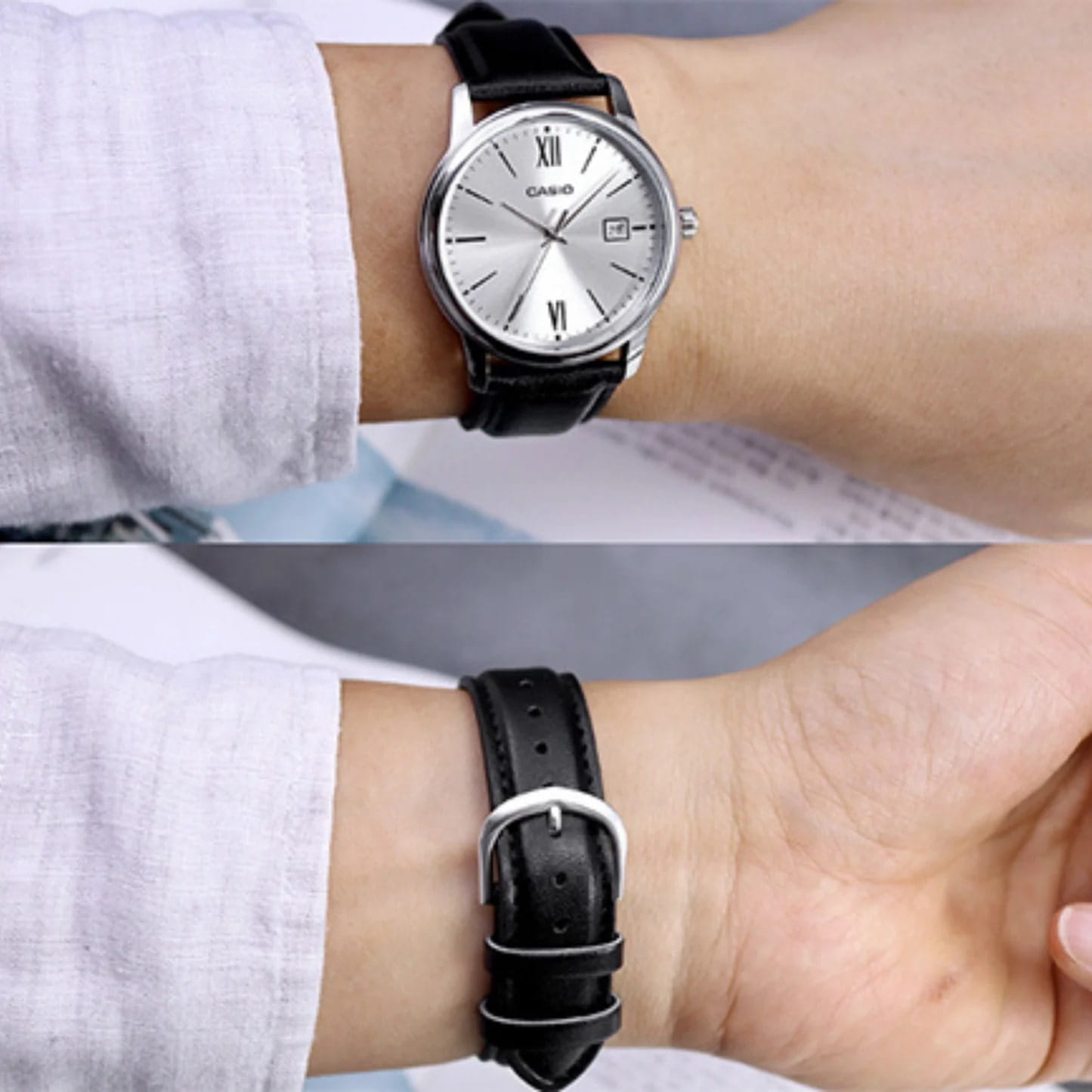 Японские мужские часы с минеральным стекломМинеральное стеклоМинеральное стекло представляет собой искусственно выращенный минерал кварца. Такое стекло отличается особой устойчивостью к повреждениям и царапинам. Уступает по некоторым качествам сапфировому стеклу. Casio Collection MTP-V002L-1B3, кварцевый механизм с высокой точностью. Корпус часов изготовлен из стали. Циферблат выполнен по технологии Sunray (солнечные лучи). Метки в виде штрихов и двух римских цифр. Батарейка рассчитана на 3 года. Ремешок с классической застежкой. Окошко даты находится в положении 3 часа.