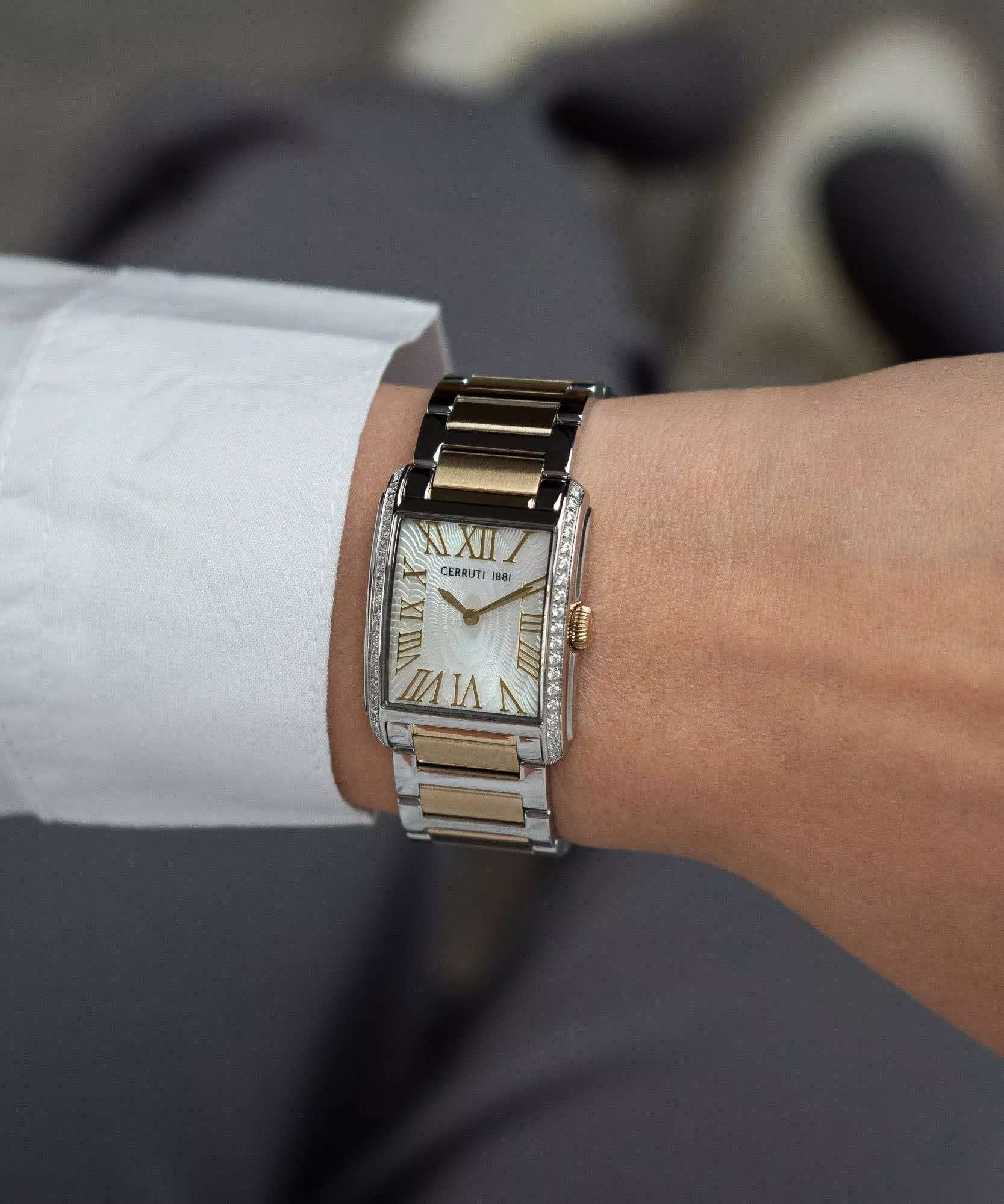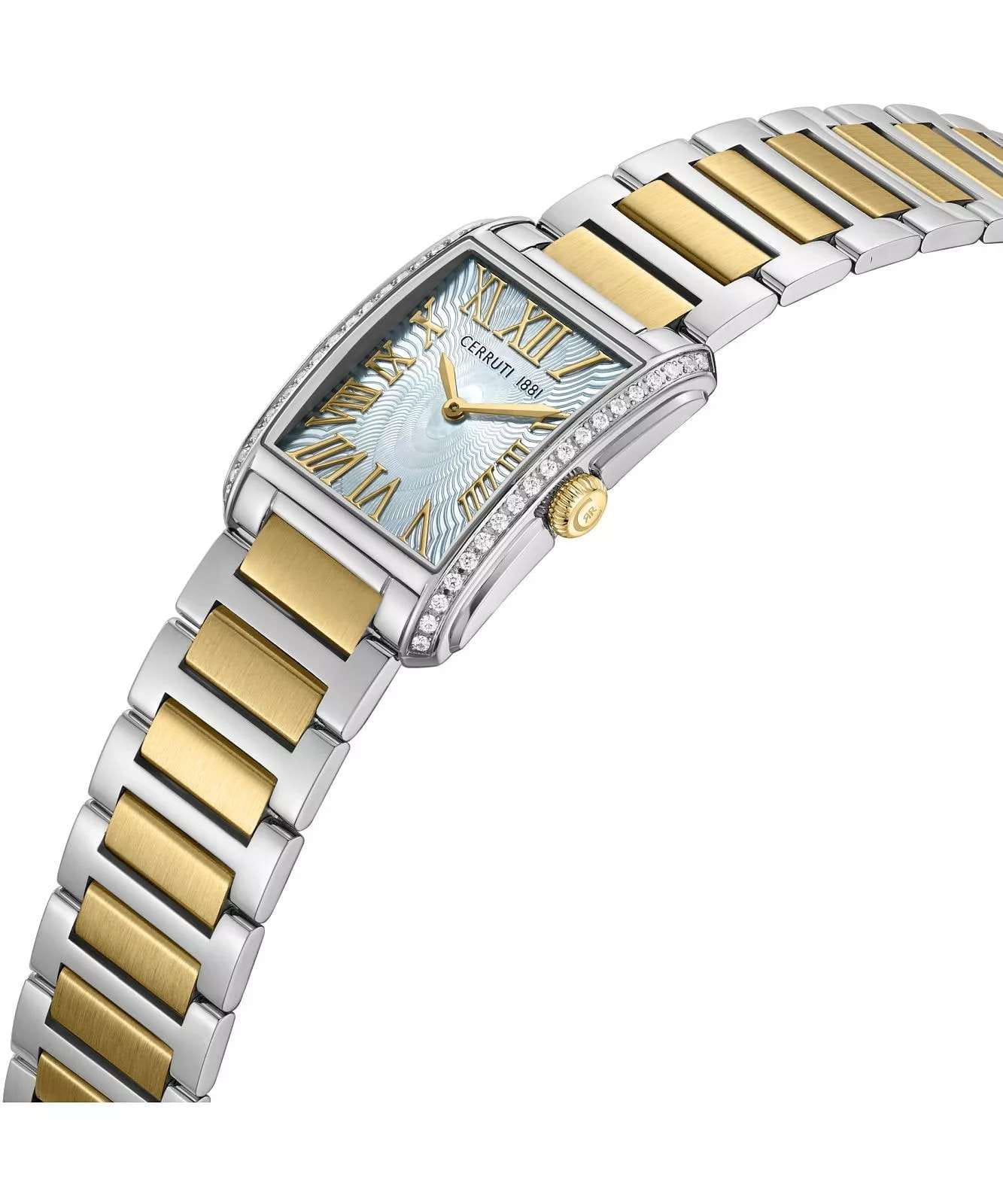 Женские кварцевые часы Cerruti 1881 Rendena CIWLG0086104 — изысканная итальянская элегантность в миниатюрном прямоугольном корпусе. Корпус из нержавеющей стали 316L украшен кристаллами, размером 24,5 × 32,5 мм. Циферблат — перламутровый с узором в виде волн и римскими цифрами. Стекло — минеральноеМинеральное стеклоМинеральное стекло представляет собой искусственно выращенный минерал кварца. Такое стекло отличается особой устойчивостью к повреждениям и царапинам. Уступает по некоторым качествам сапфировому стеклу. с сапфировым покрытием. Браслет — стальной с частичным PVD-покрытиемPVDУльтратонкое покрытие наносится в технике вакуумного напыления, сочетает в себе нитрид титана особой прочности со слоем золота или оксида хрома. Несёт в себе декоративную или защитную функцию. на застёжке «бабочка» с кнопкамиЗастёжка "бабочка"Такой вид застёжки дополняется предохранителями, помогающими избежать случайного раскрытия браслета. Обладают изящным исполнением. . Водонепроницаемость 50 м. Идеальный выбор для тех, кто ценит итальянский дизайн и утончённую женственность.