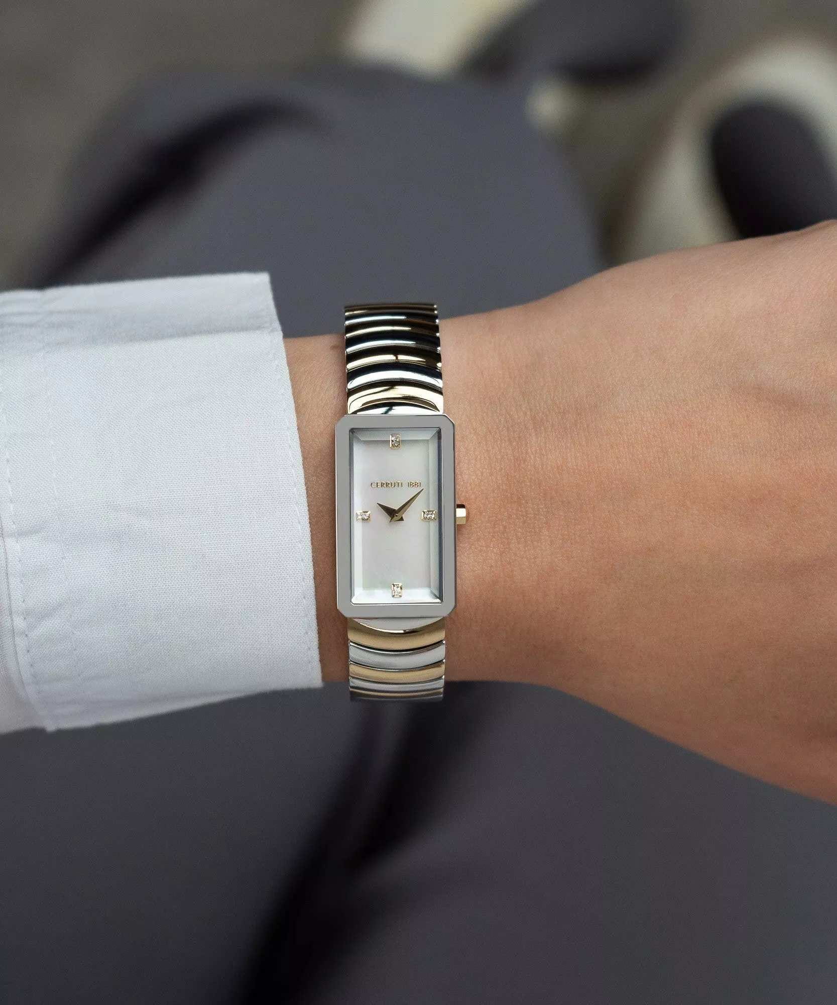 Женские кварцевые часы Cerruti 1881 Vallucciole CIWLG0086202 — миниатюрная элегантность с французским шармом. Корпус из нержавеющей стали 316L, размером 17 × 29 мм. Циферблат — белый перламутровый с точечными метками из кристаллов. Стекло — минеральноеМинеральное стеклоМинеральное стекло представляет собой искусственно выращенный минерал кварца. Такое стекло отличается особой устойчивостью к повреждениям и царапинам. Уступает по некоторым качествам сапфировому стеклу. с сапфировым покрытием. Браслет — стальной с частичным PVD-покрытиемPVDУльтратонкое покрытие наносится в технике вакуумного напыления, сочетает в себе нитрид титана особой прочности со слоем золота или оксида хрома. Несёт в себе декоративную или защитную функцию. на застёжке «бабочка» с кнопкамиЗастёжка "бабочка"Такой вид застёжки дополняется предохранителями, помогающими избежать случайного раскрытия браслета. Обладают изящным исполнением. . Водонепроницаемость 50 м. Идеальный выбор для тех, кто ценит французский дизайн и утончённую изящность.