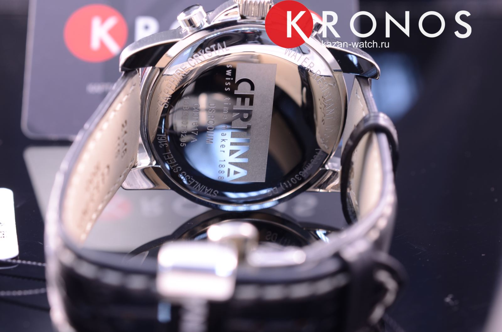Часы Certina – это воплощение высочайшей точности и надежности часов, система DS расшифровывается Double Security; "двойная надежность". Беспрекословная точность и надежность, использование сложных технологий, инновационный подход в сочетании с традициями создания хронографов, которые марка пронесла через десятилетия, – все это позволяет компании предоставлять элитные, роскошные и стильные часы. На обратной стороне нанесено изображение черепахи в знак долговечности. Задняя крышка с повышенной прочностью, два кольца с уплотнением на заводной головке.