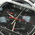 ХронографХронографФункция позволяет измерять отрезки времени с особой точностью: часы, минуты, секунды. Верным признаком хронографа является наличие на циферблате 3 дополнительных окошек-счётчиков. в спортивном стиле имеет циферблат с красными акцентами. Аксессуар оснащён функцией секундомера, тахиметраТахиметрРазмеченная шкала, располагается на ободке или безеле часов. Тахиметр позволяет рассчитать скорость на определённом участке пути, расстояние измеряется в километрах или милях., отображает текущую дату. Швейцарский кварцевый механизм ETA 251.262 отличается высокой точностью хода. Ремешок выполнен из натуральной телячьей кожи.