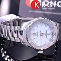 Компактный циферблат дополнен золотистыми деталями и привлекательным волновым узором, что стало выражением любви бренда к водной тематике. Отражением морского характера стал вращающийся безельБезельВнешний ободок, закрепляющий стекло. В спортивных часах так называется поворотное кольцо с делениями на циферблате, выполняет роль таймера – замеряет отрезки времени на шкале. Неподвижный безель – элемент декора. Однонаправленно вращающийся безель на дайверских часах позволяет фиксировать моменты погружения и выныривания на поверхность., водостойкость WR 300, завинчивающаяся заводная головка и задняя крышка. Высокая точность хода швейцарского кварцевого калибра F04.411 Precidrive™Precidrive™Инновационный кварцевый механизм Certina. Часы, оснащённые этим швейцарским калибром, приравниваются к точности к сертифицированным хронометрам, точность хода составляет +/-10 секунд в год. стала весомым основанием для получения сертификата хронометра COSCСертификат COSCОфициальный сертификат, подтверждающий то, что часы ходят с особо высокой точностью. Для получения документа часы подвергаются тестовым испытаниям, разработанным швейцарским институтом тестирования хронометров COSC. Допустимая норма для механических часов -4/+6 секунд в день, для кварцевых моделей +/- 0,07 секунд в день.. Система DS ConceptDS ConceptDouble Security Concept, обозначает двойную надёжность и безупречную точность часов Certina. Двойная система защиты подразумевает обеспечение максимальной устойчивости к ударам и высоких показателей водонепроницаемости.. Стальной ударопрочный корпусУдаропрочный корпусМеханизм заключён в корпус, выполненный из современных материалов, устойчивых к ударам, механическим повреждениям и падению с высоты: инновационный пластик, карбон, нержавеющая сталь, титан. и браслет. Сапфировое стекло с покрытием «антиблик». Индикатор EOLEOLПредставляет собой систему, уведомляющую владельца часов о необходимости замены элемента питания. За 2 недели до полного разряда батарейки секундная стрелка перестаёт ходить чётко и начинает перепрыгивать на 3-4 деления., отображение числа. Диаметр корпуса: 34 мм.