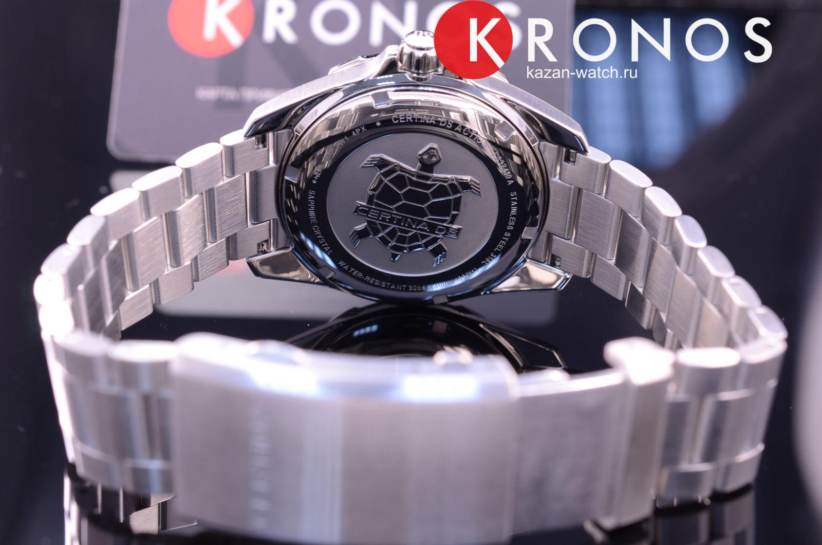 Часы отражают концепцию долговечности и практичности, использование инновационных материалов и высокоточного швейцарского калибра ETA F07.411 Precidrive™Precidrive™Инновационный кварцевый механизм Certina. Часы, оснащённые этим швейцарским калибром, приравниваются к точности к сертифицированным хронометрам, точность хода составляет +/-10 секунд в год. позволяет часам стильно выглядеть и сохранять безупречную работоспособность. Ударопрочный корпусУдаропрочный корпусМеханизм заключён в корпус, выполненный из современных материалов, устойчивых к ударам, механическим повреждениям и падению с высоты: инновационный пластик, карбон, нержавеющая сталь, титан. и браслет из стали, устойчивой к царапинам и повреждениям. Сапфировое стекло. Система Double SecurityDS ConceptDouble Security Concept, обозначает двойную надёжность и безупречную точность часов Certina. Двойная система защиты подразумевает обеспечение максимальной устойчивости к ударам и высоких показателей водонепроницаемости.. Вращающийся безельБезельВнешний ободок, закрепляющий стекло. В спортивных часах так называется поворотное кольцо с делениями на циферблате, выполняет роль таймера – замеряет отрезки времени на шкале. Неподвижный безель – элемент декора. Однонаправленно вращающийся безель на дайверских часах позволяет фиксировать моменты погружения и выныривания на поверхность.. Водонепроницаемость WR 300. Апертура даты, функция EOLEOLПредставляет собой систему, уведомляющую владельца часов о необходимости замены элемента питания. За 2 недели до полного разряда батарейки секундная стрелка перестаёт ходить чётко и начинает перепрыгивать на 3-4 деления.. «Умная» застёжка с удлинением для дайверовУдлинение для дайверовЗастёжка с удлинением для дайверов представляет собой безопасное крепление, которое позволяет надевать часы поверх гидрокостюма. Гибкая застёжка удлиняется на 1-2 миллиметра.. Диаметр корпуса: 41 мм.
