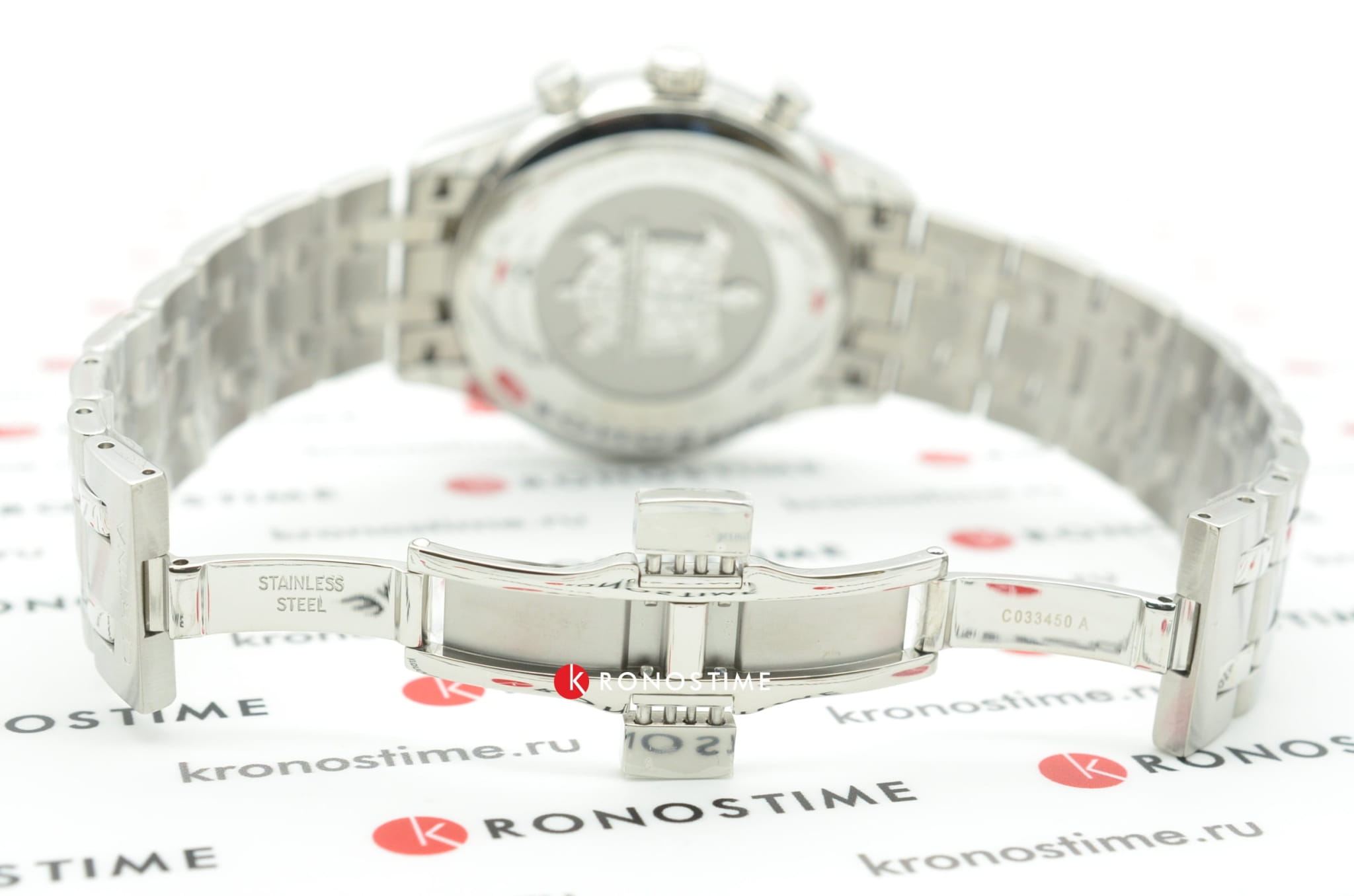 Швейцарские мужские часы Certina DS-8 Chronograph Moon Phase C033.450.11.051.00 из коллекции DS-8 привлекают оригинальным дизайном и абсолютной точностью хода. Модель, благодаря классической цветовой гамме и отсутствию броских деталей, станет универсальным аксессуаром к вашему образу. Брендовый хронографХронографФункция позволяет измерять отрезки времени с особой точностью: часы, минуты, секунды. Верным признаком хронографа является наличие на циферблате 3 дополнительных окошек-счётчиков. измеряет время с высокой точностью, что обеспечивает швейцарский кварцевый калибр ETA G10.962 Precidrive™Precidrive™Инновационный кварцевый механизм Certina. Часы, оснащённые этим швейцарским калибром, приравниваются к точности к сертифицированным хронометрам, точность хода составляет +/-10 секунд в год.. Браслет из нержавеющей стали. Сапфировое стекло с двухсторонним антибликовым покрытием. Корпус из нержавеющей стали 316L. Водостойкость 10 бар. Люминесцентная подсветкаЛюминесцентное покрытиеПозволяет считывать показания времени в темноте. Производители наносят на стрелки, часовые индексы, безель или поверхность циферблата светонакопительный состав, дающий холодное свечение.. Задняя крышка с гравировкой. Секундомер, дата, индикатор EOLEOLПредставляет собой систему, уведомляющую владельца часов о необходимости замены элемента питания. За 2 недели до полного разряда батарейки секундная стрелка перестаёт ходить чётко и начинает перепрыгивать на 3-4 деления., отображение лунных фаз. Диаметр корпуса: 42 мм. Производство и сборка: Швейцария.