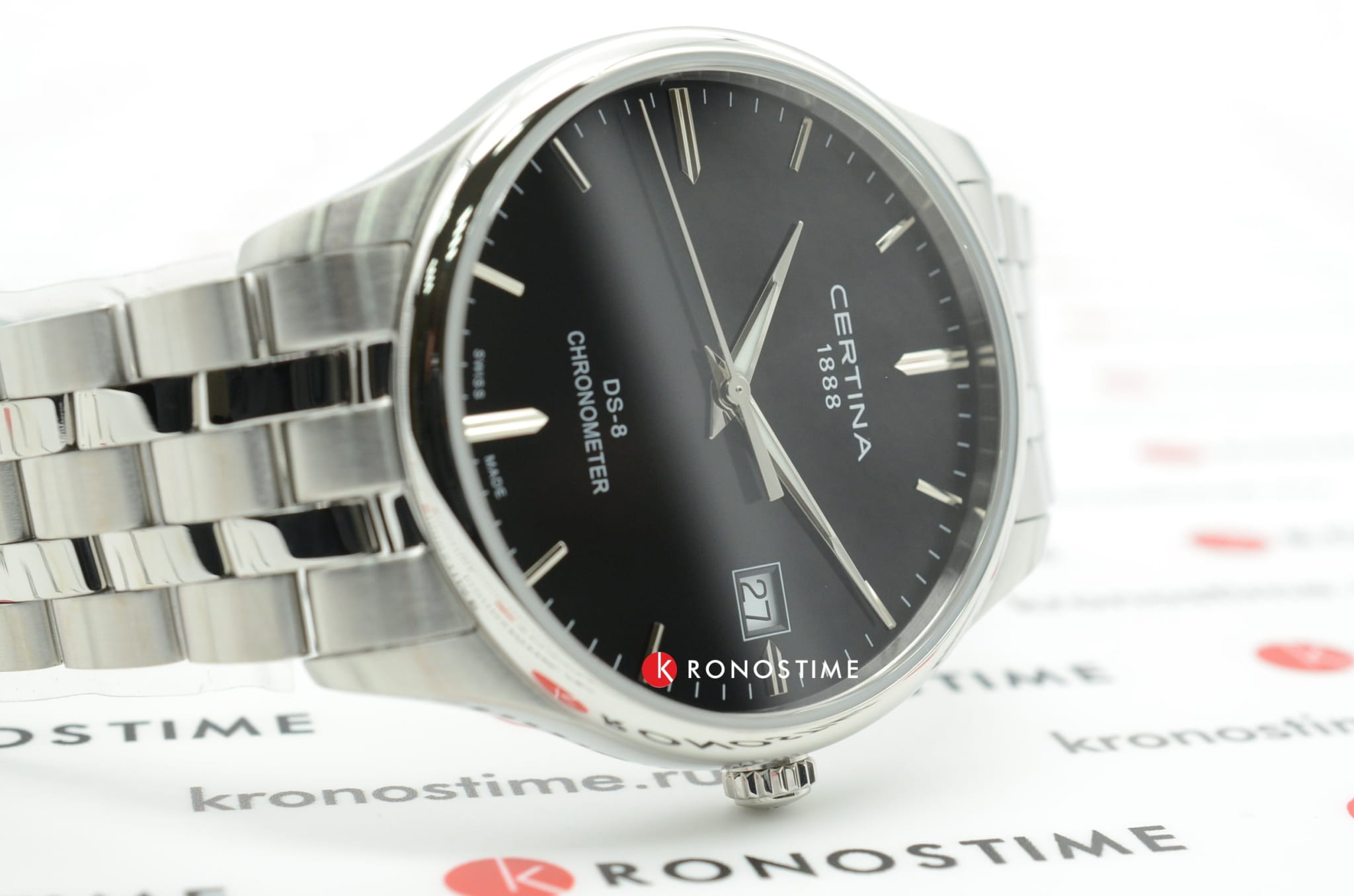 Стильный аксессуар в минималистичном оформлении охарактеризует вас как человека, который действительно разбирается в часах. Модель отличается повышенной точностью хода, это подтверждено официальным сертификатом хронометра COSCСертификат COSCОфициальный сертификат, подтверждающий то, что часы ходят с особо высокой точностью. Для получения документа часы подвергаются тестовым испытаниям, разработанным швейцарским институтом тестирования хронометров COSC. Допустимая норма для механических часов -4/+6 секунд в день, для кварцевых моделей +/- 0,07 секунд в день.. Часы обладают ударопрочным корпусомУдаропрочный корпусМеханизм заключён в корпус, выполненный из современных материалов, устойчивых к ударам, механическим повреждениям и падению с высоты: инновационный пластик, карбон, нержавеющая сталь, титан. и водонепроницаемостью до 10 бар - такие безупречные характеристики появились благодаря фирменной концепции DS ConceptDS ConceptDouble Security Concept, обозначает двойную надёжность и безупречную точность часов Certina. Двойная система защиты подразумевает обеспечение максимальной устойчивости к ударам и высоких показателей водонепроницаемости.. Швейцарский кварцевый механизм ETA F07.412 Precidrive™Precidrive™Инновационный кварцевый механизм Certina. Часы, оснащённые этим швейцарским калибром, приравниваются к точности к сертифицированным хронометрам, точность хода составляет +/-10 секунд в год.. Стекло из сапфира с антибликовым покрытием. Корпус и браслет из нержавеющей стали 316L. Индикация числа, функция EOLEOLПредставляет собой систему, уведомляющую владельца часов о необходимости замены элемента питания. За 2 недели до полного разряда батарейки секундная стрелка перестаёт ходить чётко и начинает перепрыгивать на 3-4 деления.. Диаметр корпуса: 40,2 мм.