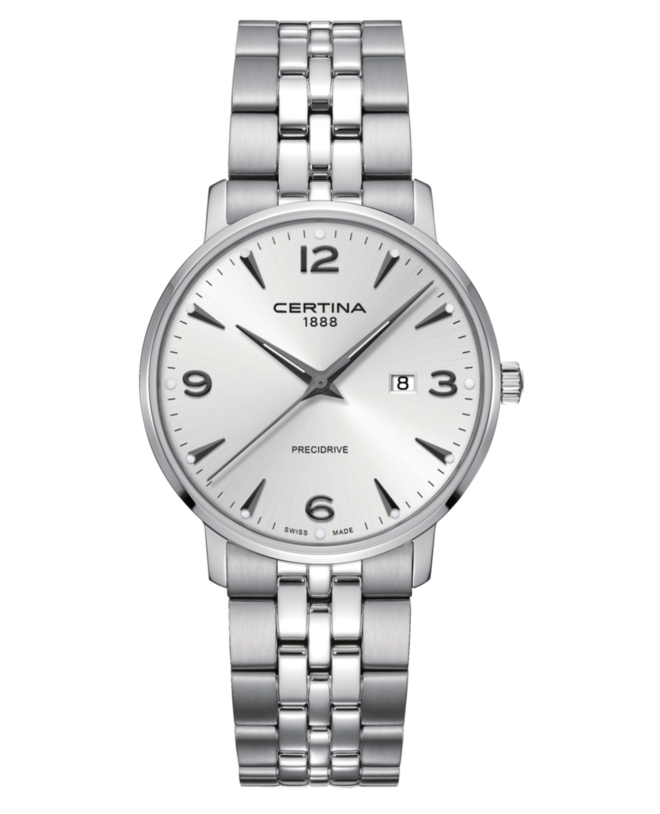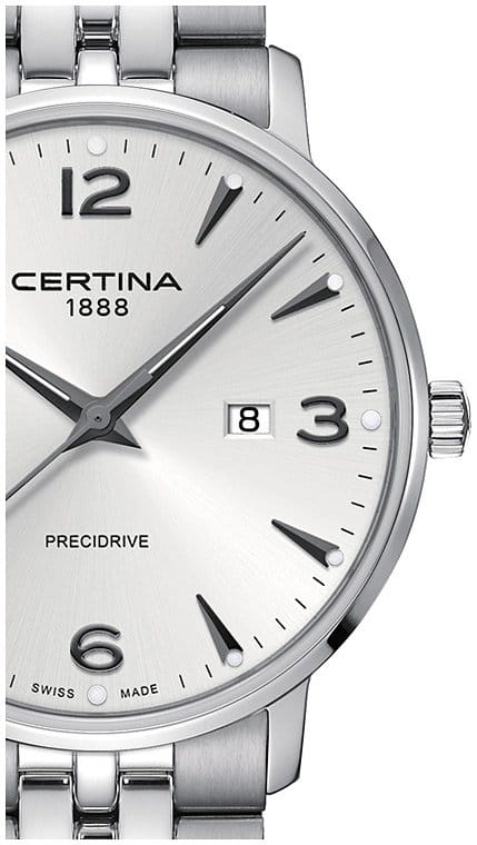 Часы с ударопрочным корпусомУдаропрочный корпусМеханизм заключён в корпус, выполненный из современных материалов, устойчивых к ударам, механическим повреждениям и падению с высоты: инновационный пластик, карбон, нержавеющая сталь, титан. сделаны из нержавеющей стали 316L. Высокая точность хода обеспечивается за счёт швейцарского кварцевого механизма F05.411 Precidrive™Precidrive™Инновационный кварцевый механизм Certina. Часы, оснащённые этим швейцарским калибром, приравниваются к точности к сертифицированным хронометрам, точность хода составляет +/-10 секунд в год.. Сапфировое стекло. Люминесцентная подсветкаЛюминесцентное покрытиеПозволяет считывать показания времени в темноте. Производители наносят на стрелки, часовые индексы, безель или поверхность циферблата светонакопительный состав, дающий холодное свечение.. Водозащита WR 100. Апертура даты.
