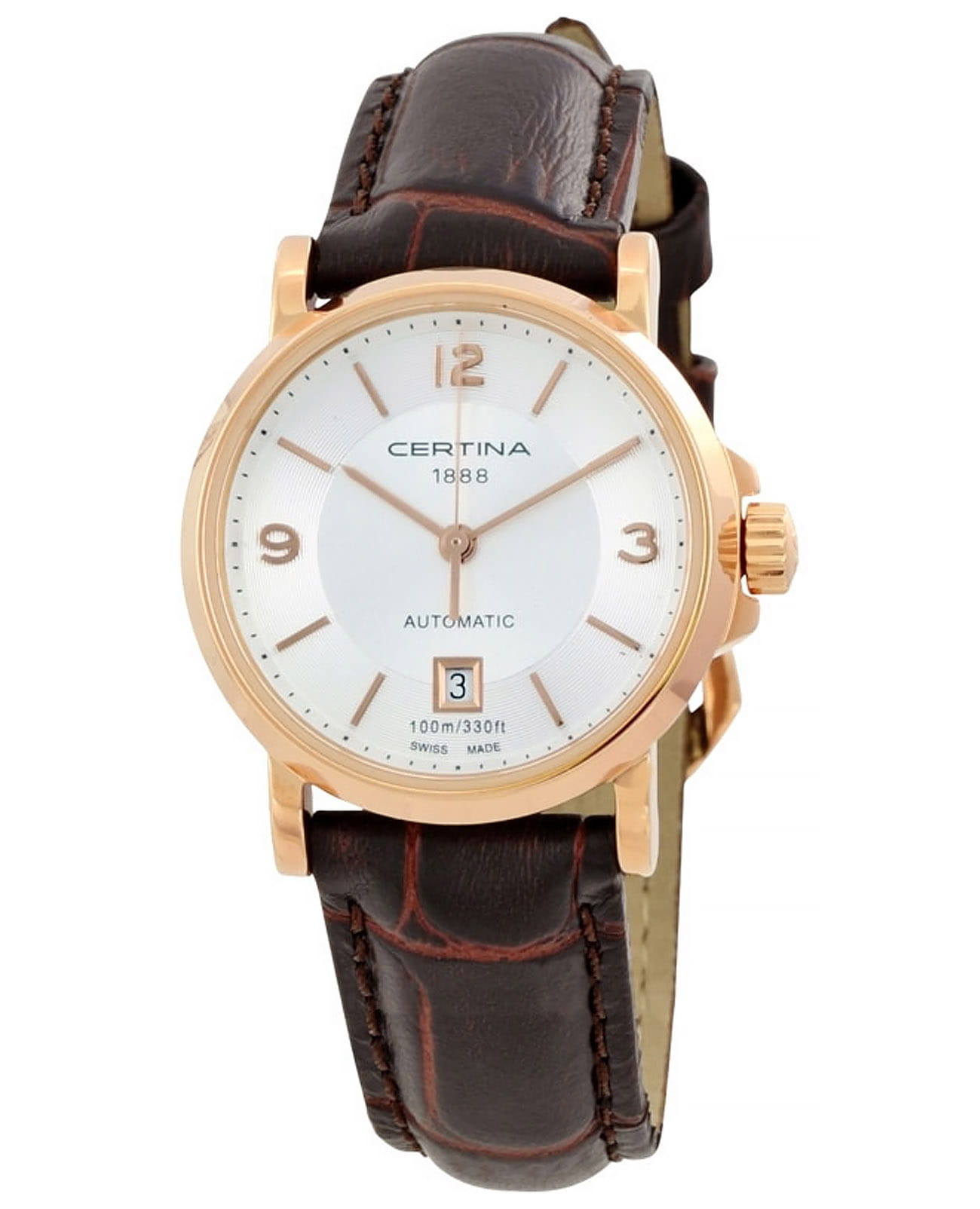 Женские швейцарские часы с сапфировым стекломСапфировое стеклоПрочный и надёжный материал из кристалла сапфира синтетического происхождения, характеризующийся особой твёрдостью и устойчивостью к царапинам и повреждениям. Certina DS Caimano C017.207.36.037.00 привлекает внимание окружающих приятным сочетанием простоты и кокетства. DS Caimano. Водонепроницаемые женские часы. В механизме 25 камней, частота 28800 полуколебаний в час. Запас хода 38 часов. Круглый стальной корпус с PVDPVDУльтратонкое покрытие наносится в технике вакуумного напыления, сочетает в себе нитрид титана особой прочности со слоем золота или оксида хрома. Несёт в себе декоративную или защитную функцию. покрытием. Циферблат выполнен по технологии Sunray (солнечные лучи). Узкие заостренные прямоугольные стрелки в стиле Baton. Метки в виде штрихов, 3, 6 и 12 часовые метки в виде арабских цифр.