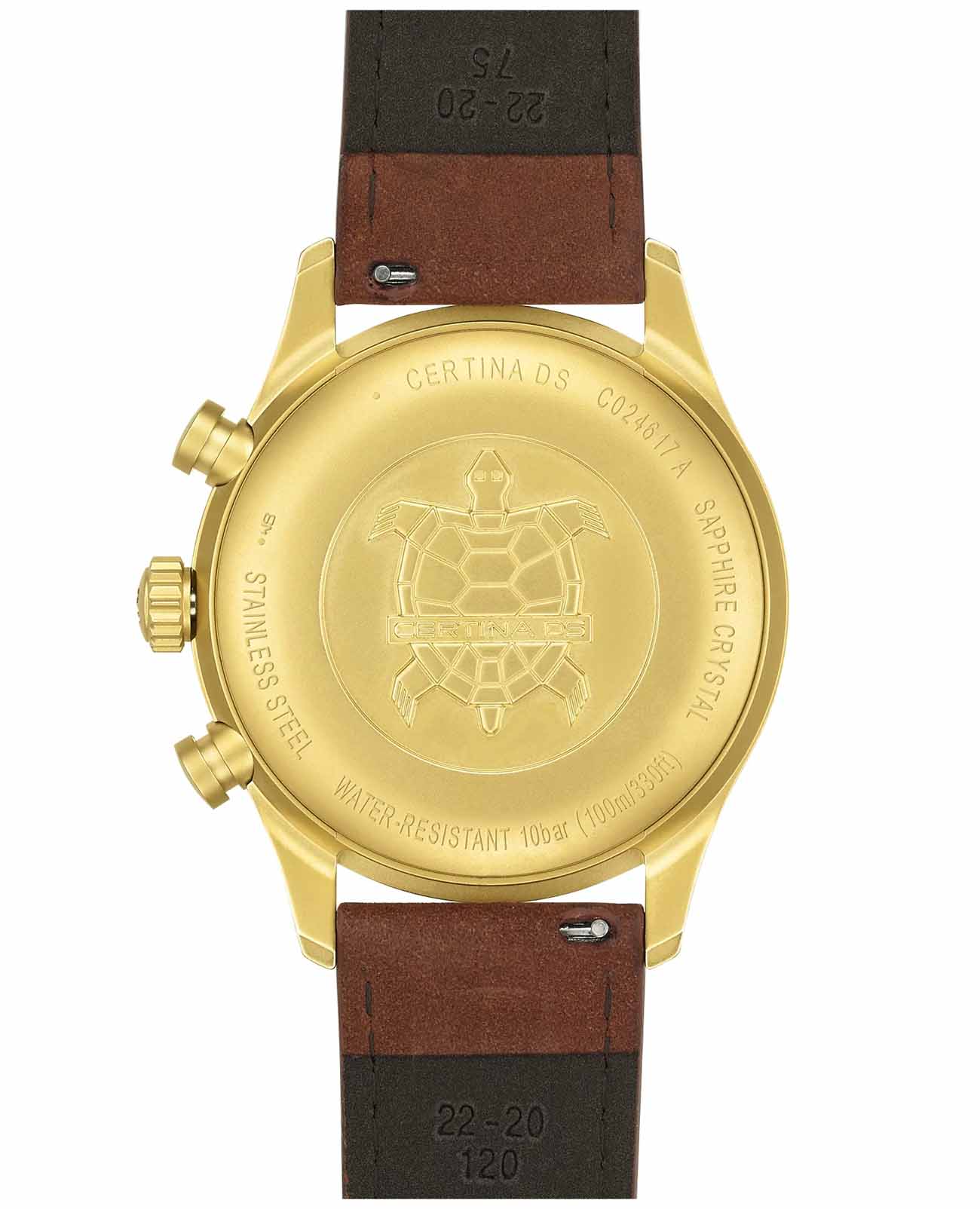 Мужские швейцарские часы Certina DS Pilot C0246173609200, кварцевый механизм с высокой точностью. Сапфировое стеклоСапфировое стеклоПрочный и надёжный материал из кристалла сапфира синтетического происхождения, характеризующийся особой твёрдостью и устойчивостью к царапинам и повреждениям. устойчивое к появлению царапин, обладающее высокой прозрачностью. Корпус изготовлен из нержавеющей стали с PVD-покрытиемPVDУльтратонкое покрытие наносится в технике вакуумного напыления, сочетает в себе нитрид титана особой прочности со слоем золота или оксида хрома. Несёт в себе декоративную или защитную функцию.. Стрелки с люминесцентным покрытиемЛюминесцентное покрытиеПозволяет считывать показания времени в темноте. Производители наносят на стрелки, часовые индексы, безель или поверхность циферблата светонакопительный состав, дающий холодное свечение.. Окошко даты находится в положении 6 часов. Класс водозащиты: 100 метров, позволит плавать, нырять и заниматься другими водными видами спорта. Кожаный браслет на стандартной застежке.