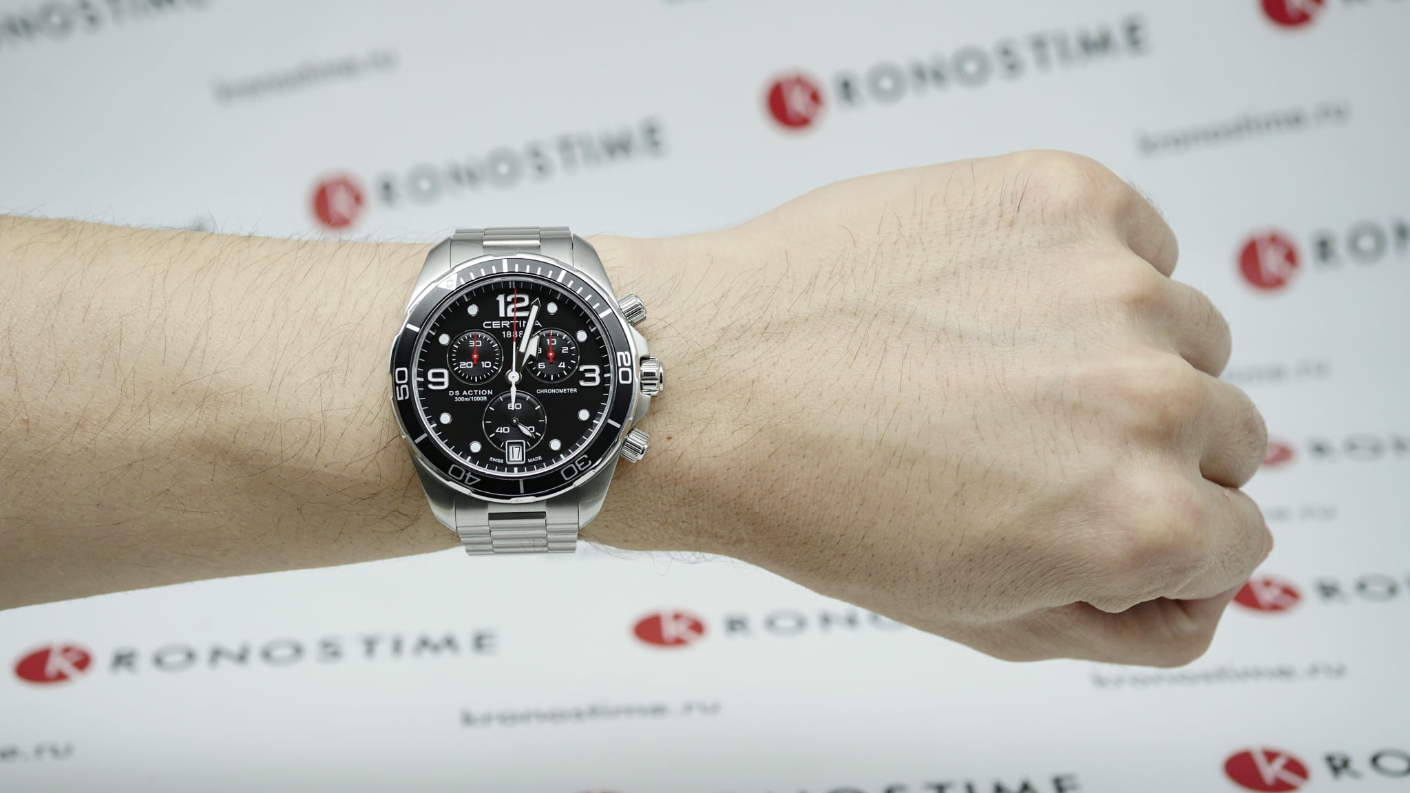 Дайверский хронографХронографФункция позволяет измерять отрезки времени с особой точностью: часы, минуты, секунды. Верным признаком хронографа является наличие на циферблате 3 дополнительных окошек-счётчиков. в чёрно-серебристом исполнении станет идеальным завершением делового, повседневного образа. Аксессуар дополнен безелемБезельВнешний ободок, закрепляющий стекло. В спортивных часах так называется поворотное кольцо с делениями на циферблате, выполняет роль таймера – замеряет отрезки времени на шкале. Неподвижный безель – элемент декора. Однонаправленно вращающийся безель на дайверских часах позволяет фиксировать моменты погружения и выныривания на поверхность. из анодированного алюминия, что облегчает конструкцию часов. Модель сделана из хирургической стали 316L, востребованной благодаря прочности и устойчивости к коррозии. Точность хода швейцарского механизма G10.212 AA PRECIDRIVE приравнивается к хронометрической, что подтверждено сертификатом COSCСертификат COSCОфициальный сертификат, подтверждающий то, что часы ходят с особо высокой точностью. Для получения документа часы подвергаются тестовым испытаниям, разработанным швейцарским институтом тестирования хронометров COSC. Допустимая норма для механических часов -4/+6 секунд в день, для кварцевых моделей +/- 0,07 секунд в день.. Улучшению читаемости показателей в солнечные дни способствует антибликовое покрытие сапфирового стекла. Максимальная водостойкость 300 метров. Концепция DSDS ConceptDouble Security Concept, обозначает двойную надёжность и безупречную точность часов Certina. Двойная система защиты подразумевает обеспечение максимальной устойчивости к ударам и высоких показателей водонепроницаемости.. Люминесцентная подсветкаЛюминесцентное покрытиеПозволяет считывать показания времени в темноте. Производители наносят на стрелки, часовые индексы, безель или поверхность циферблата светонакопительный состав, дающий холодное свечение.. Секундомер, отображение даты. Диаметр корпуса: 43 мм.