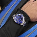Коллекция DS Action открывает новые «глубины» часового искусства в прямом смысле этого слова: эти «морские» часы в стиле унисекс отличаются точностью, исключительной водостойкостью и динамичным дизайном – идеальный выбор для любой ситуации. Швейцарские мужские механические часы Certina DS Action Diver Chrono C032.827.11.041.00 из коллекции DS Action – безупречно точный и впечатляюще надёжный аксессуар. Габаритный хронографХронографФункция позволяет измерять отрезки времени с особой точностью: часы, минуты, секунды. Верным признаком хронографа является наличие на циферблате 3 дополнительных окошек-счётчиков. с синим циферблатом выгодно подчеркнёт повседневный или деловой образ. Модель соответствует стандарту ISO 6425 для дайверских часов и может похвастаться повышенной водостойкостью до 30 бар. Заводная головка, кнопки и задняя крышка завинчиваются для дополнительной герметичности. Аксессуар позволит вам чувствовать себя на высоте и в воде, и на суше. Сапфировое стеклоСапфировое стеклоПрочный и надёжный материал из кристалла сапфира синтетического происхождения, характеризующийся особой твёрдостью и устойчивостью к царапинам и повреждениям. с двухсторонней антибликовой обработкой. Керамический вращающийся безельБезельВнешний ободок, закрепляющий стекло. В спортивных часах так называется поворотное кольцо с делениями на циферблате, выполняет роль таймера – замеряет отрезки времени на шкале. Неподвижный безель – элемент декора. Однонаправленно вращающийся безель на дайверских часах позволяет фиксировать моменты погружения и выныривания на поверхность.. Корпус из нержавеющей стали 316L. Люминесцентная подсветкаЛюминесцентное покрытиеПозволяет считывать показания времени в темноте. Производители наносят на стрелки, часовые индексы, безель или поверхность циферблата светонакопительный состав, дающий холодное свечение.. Календарь, секундомер. Стальной браслет на раскладной застёжкеРаскладная застёжкаТакой тип застёжки используется только на браслетах из металла. Она никогда не раскрывается полностью, происходит разделение на 2 и более частей. Раскладывающая застёжка снизит вероятность потери часов к минимуму.. Диаметр корпуса: 44,6 мм. Производство и сборка: Швейцария.