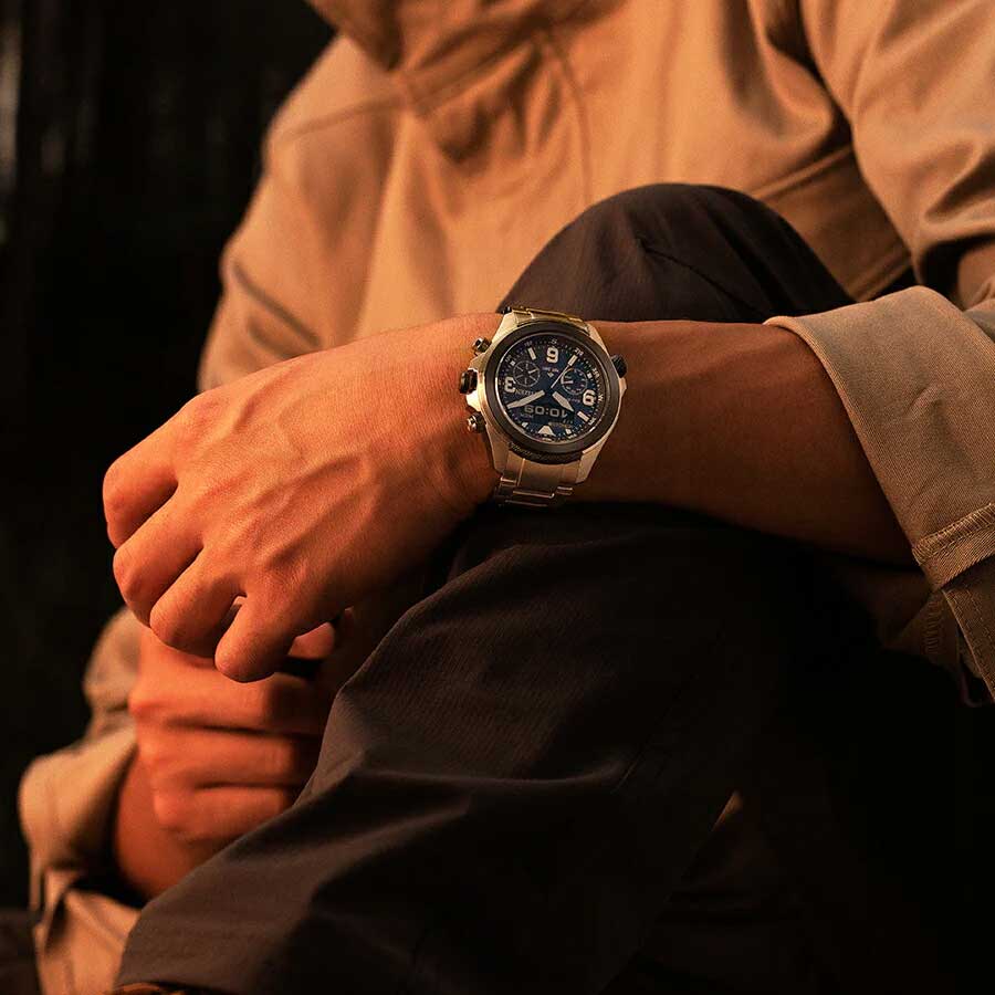 Citizen Promaster JV1006-51L часы-хронографХронографФункция позволяет измерять отрезки времени с особой точностью: часы, минуты, секунды. Верным признаком хронографа является наличие на циферблате 3 дополнительных окошек-счётчиков. с секундомеромСекундомерСекундоме́р — прибор, способный измерять интервалы времени с точностью до долей секунды. спортивного дизайна с высоким уровнем водозащиты. Корпус из нержавеющей стали диаметром 43,9 мм идеально сбалансирован. Сапфировое стеклоСапфировое стеклоПрочный и надёжный материал из кристалла сапфира синтетического происхождения, характеризующийся особой твёрдостью и устойчивостью к царапинам и повреждениям. с антибликовым покрытием обеспечивает отличную защиту циферблата от царапин. Часы работают на основе кварцевого механизма, питание от солнечной энергии. Стальной браслет на раскладной застёжкеРаскладная застёжкаТакой тип застёжки используется только на браслетах из металла. Она никогда не раскрывается полностью, происходит разделение на 2 и более частей. Раскладывающая застёжка снизит вероятность потери часов к минимуму. идеально дополняют дизайн часов, обеспечивая комфортное ношение. Стрелки и метки на циферблате имеют люминесцентное покрытиеЛюминесцентное покрытиеПозволяет считывать показания времени в темноте. Производители наносят на стрелки, часовые индексы, безель или поверхность циферблата светонакопительный состав, дающий холодное свечение. позволяющее легко определять время даже в темноте. LCD дисплей с светодиодной подсветкойСветодиодная подсветкаСветодиодная или LED-подсветка обеспечивает появление яркого холодного свечения за счёт LED-элементов - маленьких лампочек. Они потребляют минимальное количество энергии, чаще всего можно встретить 1 светодиод, в нижней части циферблата.. Вращающийся безельБезельВнешний ободок, закрепляющий стекло. В спортивных часах так называется поворотное кольцо с делениями на циферблате, выполняет роль таймера – замеряет отрезки времени на шкале. Неподвижный безель – элемент декора. Однонаправленно вращающийся безель на дайверских часах позволяет фиксировать моменты погружения и выныривания на поверхность. с IP-покрытиемIP-покрытиеМетод ионного напыления. Демонстрирует повышенную устойчивость к истиранию, окислению и химическим веществам. Под воздействием высокого давления и температуры около 1500°C молекулы металла надёжно соединяются с частицами корпуса часов. и логарифмической линейкой. Функция индикации заряда (EOL) и предотвращения перезарядки. Мировое времяМировое время Полезное часовое усложнение, отображающее время в основных городах и известных областях по всему миру, оно связано с часовыми поясами, удобно для путешественников и бизнесменов. - 43 города (29 часовых поясов), переход на зимнее и летнее время. Сплит-хронографСплит-хронографИспользуется для измерения продолжительности нескольких временных отрезков, начинающихся одновременно, а заканчивающихся в разное время.. ТаймерТаймерОтсчитывает секунды в обратном направлении в заданном интервале времени. обратного отсчета до 100мин. Секундомер с точностью 1сек и временем измерения 1ч. Всемирное координированное время UTCUTCВсемирное кординационное время, не имеющее привязки к географическому положению Гринвича, основывается на атомном отсчёте времени. Ре