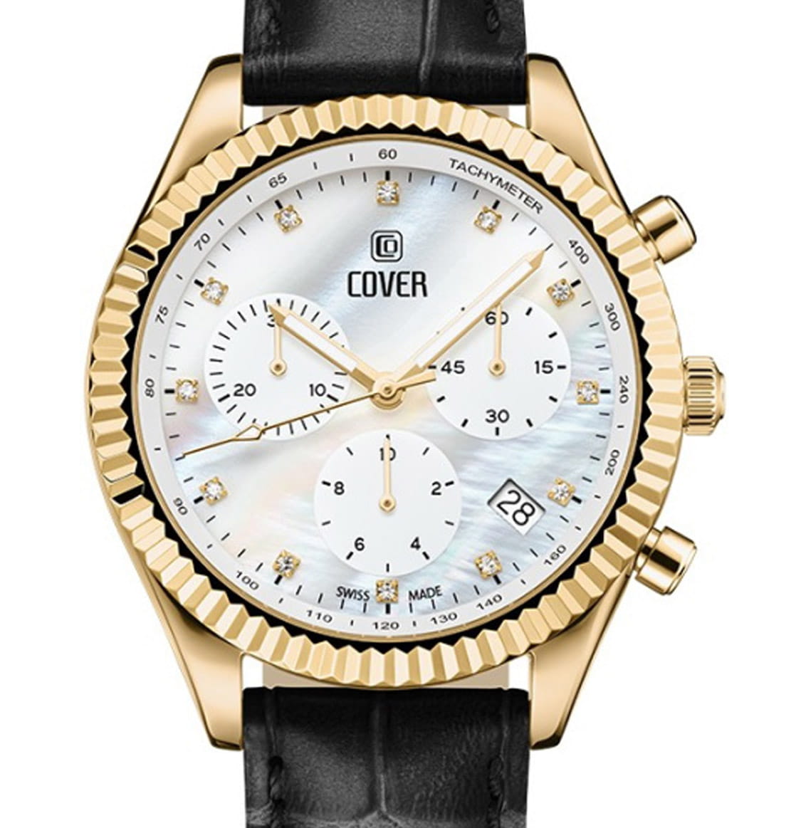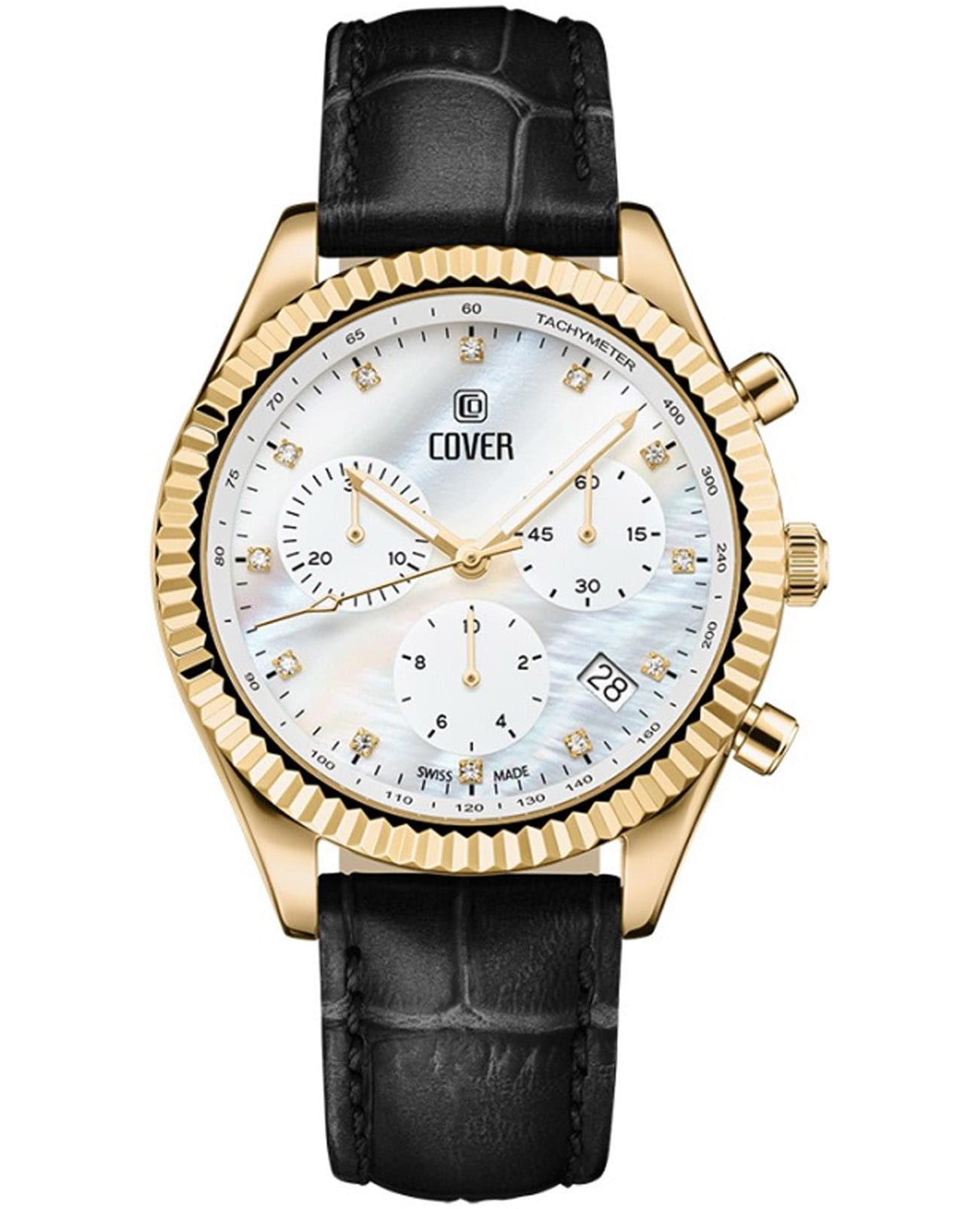 Элегантные женские часы Cover CO207.07 в спортивном стиле из коллекции Valentina Chronograph — это идеальное сочетание утонченности и функциональности. Оснащенные кварцевым механизмом с модулем хронографа Ronda 5040.D, они обеспечивают точность и надежность в каждом моменте. Молочно-белый перламутровый циферблат с 12 кристаллами Swarovski в роли часовых индексов придает часам изысканный вид, а три накопителя на «3», «6» и «9 часах» вместе с апертурой даты между «4» и «5 часами» добавляют функциональности. ТахиметрТахиметрРазмеченная шкала, располагается на ободке или безеле часов. Тахиметр позволяет рассчитать скорость на определённом участке пути, расстояние измеряется в километрах или милях.ическая шкала на внутреннем фланце позволяет легко отслеживать скорость, что делает эти часы не только стильными, но и практичными. Корпус диаметром 38 мм с рифленым ,безелемБезельВнешний ободок, закрепляющий стекло. В спортивных часах так называется поворотное кольцо с делениями на циферблате, выполняет роль таймера – замеряет отрезки времени на шкале. Неподвижный безель – элемент декора. Однонаправленно вращающийся безель на дайверских часах позволяет фиксировать моменты погружения и выныривания на поверхность. из нержавеющей стали с PVD-покрытиемPVDУльтратонкое покрытие наносится в технике вакуумного напыления, сочетает в себе нитрид титана особой прочности со слоем золота или оксида хрома. Несёт в себе декоративную или защитную функцию. и кожаный ремешок подчеркивают современный дизайн и комфорт при ношении. С водонепроницаемостью до 50 м и сапфировым стекломСапфировое стеклоПрочный и надёжный материал из кристалла сапфира синтетического происхождения, характеризующийся особой твёрдостью и устойчивостью к царапинам и повреждениям., эти часы идеально подходят для активных женщин. Маркировка «Swiss Made» гарантирует высокое качество и долговечность. Гарантия на изделие составляет 2 года, что подтверждает надежность и уверенность в вашем выборе. Эти часы станут не только прекрасным дополнением к вашему образу, но и верным спутником в повседневной жизни. Кожаный ремешок на классической застежке.