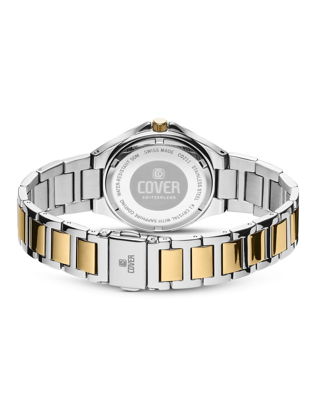 Женские швейцарские часы COVER CO211.02 — это изысканный повседневный аксессуар с оригинальным 12-угольным стальным корпусом из коллекции Cardea. Часы оснащены кварцевым калибром ETA 902.501. Надежное минеральное стеклоМинеральное стеклоМинеральное стекло представляет собой искусственно выращенный минерал кварца. Такое стекло отличается особой устойчивостью к повреждениям и царапинам. Уступает по некоторым качествам сапфировому стеклу. защищает часы от царапин и долго сохраняет первоначальный внешний вид. Серебристый циферблат с круговой сатинированной отделкой и узором Sunray придает им элегантный вид. Накладные индексы и римские цифры VI и XII добавляют стильный акцент. Малая секундная стрелка расположена в положении «6 часов». Интегрированный браслет с частичным PVDPVDУльтратонкое покрытие наносится в технике вакуумного напыления, сочетает в себе нитрид титана особой прочности со слоем золота или оксида хрома. Несёт в себе декоративную или защитную функцию. покрытием цвета розового золота на раскладной застёжкеРаскладная застёжкаТакой тип застёжки используется только на браслетах из металла. Она никогда не раскрывается полностью, происходит разделение на 2 и более частей. Раскладывающая застёжка снизит вероятность потери часов к минимуму. обеспечивает комфорт и надежность. Часы имеют маркировку «Swiss Made», что подтверждает их высокое качество и точность. Водостойкость на уровне WR 50 позволяет не беспокоиться о попадании воды при мытье рук или в дождливую погоду.