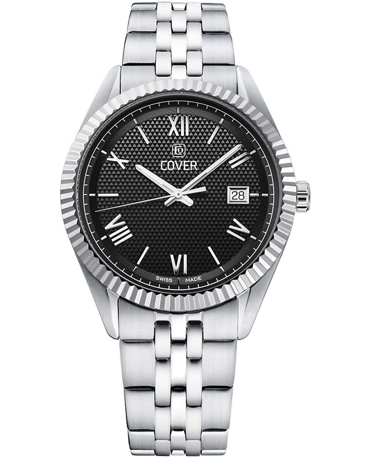 Cover Alston CO216.03 – элегантные мужские часы, сочетающие современный стиль и классическую элегантность. Корпус диаметром 40 мм выполнен из нержавеющей стали, что обеспечивает прочность и долговечность. Циферблат с тонким треугольным узором придаёт часам изысканный вид, а его поверхность защищена сапфировым стекломСапфировое стеклоПрочный и надёжный материал из кристалла сапфира синтетического происхождения, характеризующийся особой твёрдостью и устойчивостью к царапинам и повреждениям., устойчивым к царапинам. Часы оснащены швейцарским кварцевым механизмом, обеспечивающим точный ход и надёжность. Функциональность дополняется окошком даты, расположенным на позиции «3 часа». Браслет из нержавеющей стали оснащён раскладной застёжкойРаскладная застёжкаТакой тип застёжки используется только на браслетах из металла. Она никогда не раскрывается полностью, происходит разделение на 2 и более частей. Раскладывающая застёжка снизит вероятность потери часов к минимуму., обеспечивающей удобную и надёжную фиксацию на запястье. Водонепроницаемость до 50 метров (5 ATM) позволяет использовать часы в повседневной жизни, защищая их от случайных брызг и дождя.