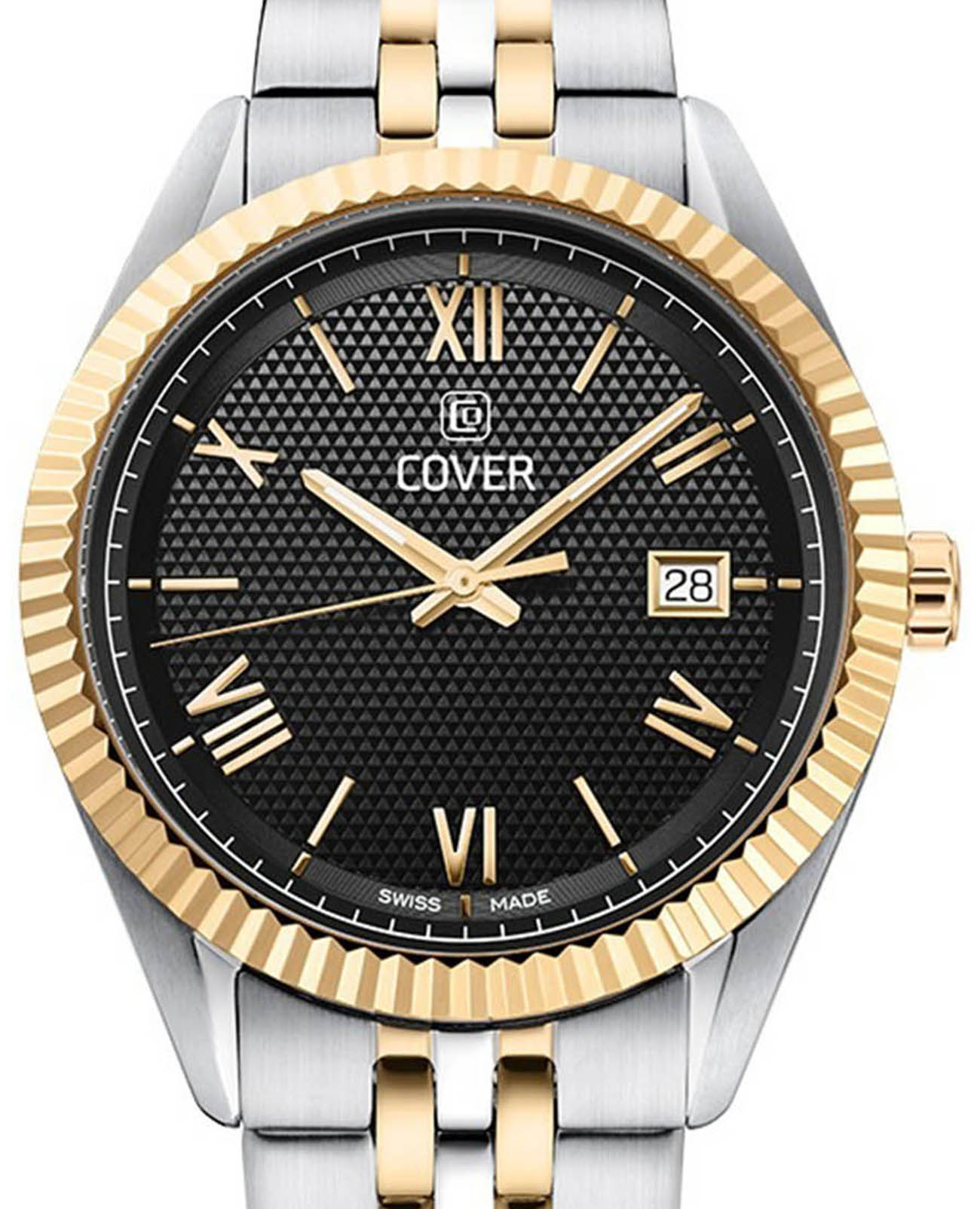 Cover Alston CO216.05 – элегантные мужские часы, сочетающие современный стиль и классическую элегантность. Корпус диаметром 40 мм выполнен из нержавеющей стали, что обеспечивает прочность и долговечность. Циферблат черного цвета с тонким треугольным узором придаёт часам изысканный вид, а его поверхность защищена  минеральным стекломМинеральное стеклоМинеральное стекло представляет собой искусственно выращенный минерал кварца. Такое стекло отличается особой устойчивостью к повреждениям и царапинам. Уступает по некоторым качествам сапфировому стеклу.. Часы оснащены швейцарским кварцевым механизмом, обеспечивающим точный ход и надёжность. Функциональность дополняется окошком даты, расположенным на позиции «3 часа». Браслет и безельБезельВнешний ободок, закрепляющий стекло. В спортивных часах так называется поворотное кольцо с делениями на циферблате, выполняет роль таймера – замеряет отрезки времени на шкале. Неподвижный безель – элемент декора. Однонаправленно вращающийся безель на дайверских часах позволяет фиксировать моменты погружения и выныривания на поверхность. изготовлены из нержавеющей стали с PVDPVDУльтратонкое покрытие наносится в технике вакуумного напыления, сочетает в себе нитрид титана особой прочности со слоем золота или оксида хрома. Несёт в себе декоративную или защитную функцию. покрытием, также браслет оснащён раскладной застёжкойРаскладная застёжкаТакой тип застёжки используется только на браслетах из металла. Она никогда не раскрывается полностью, происходит разделение на 2 и более частей. Раскладывающая застёжка снизит вероятность потери часов к минимуму., обеспечивающей удобную и надёжную фиксацию на запястье. Водонепроницаемость до 50 метров (5 ATM) позволяет использовать часы в повседневной жизни, защищая их от случайных брызг и дождя.