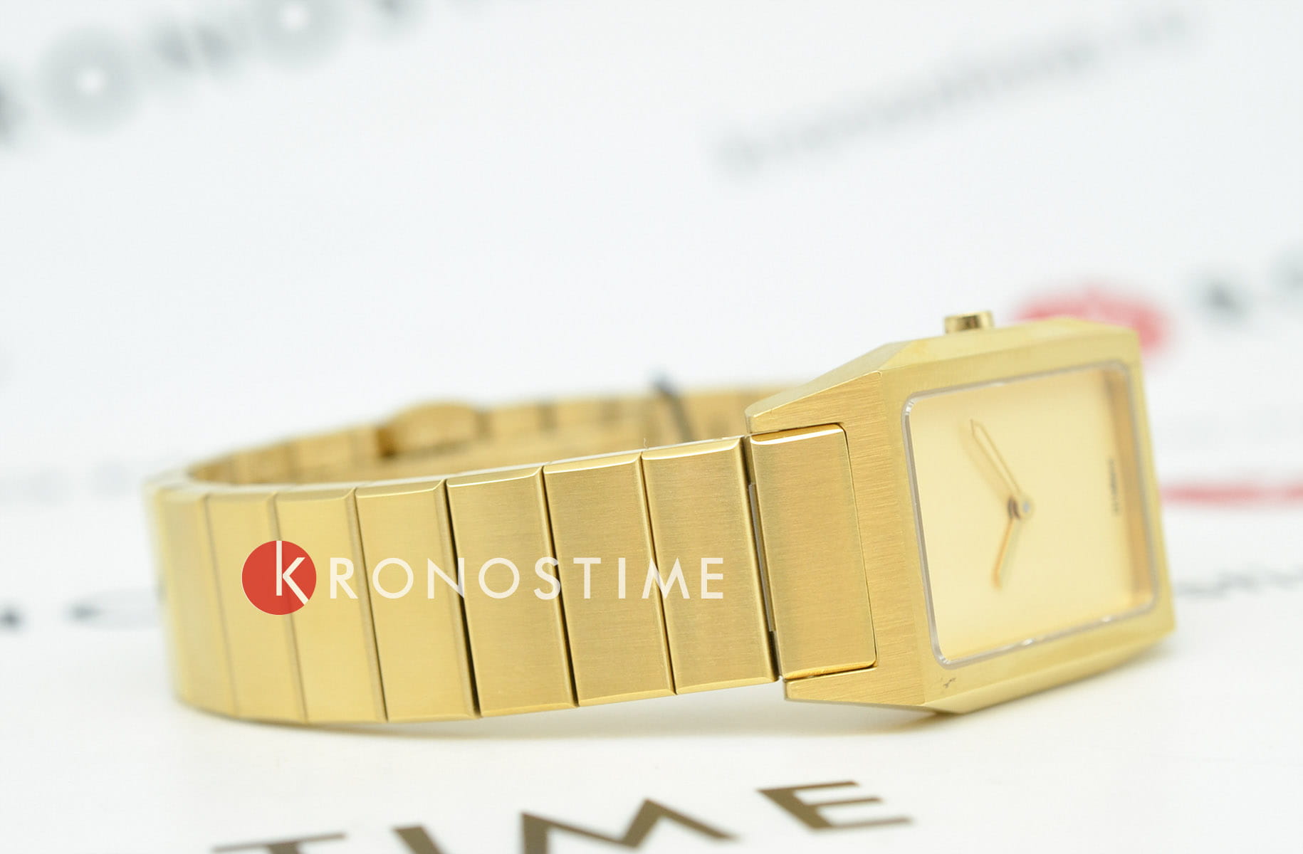 Часы D1 Milano Aura Studio 73 ARBU03 — это уникальные кварцевые часы, которые подчеркнут ваш изысканный стиль. Эти наручные часы с эффектным монохромным дизайном станут выразительным акцентом вашего образа. Изысканный корпус из стали 316L с PVD-покрытиемPVDУльтратонкое покрытие наносится в технике вакуумного напыления, сочетает в себе нитрид титана особой прочности со слоем золота или оксида хрома. Несёт в себе декоративную или защитную функцию. диаметром 23 мм придает часам современный и утонченный вид. Золотистый циферблат и золотые стрелки создают стильный контраст, подчёркивая элегантность модели. Задняя крышка закреплена на 4-х винтах. Стальной браслет с PVD-покрытиемPVDУльтратонкое покрытие наносится в технике вакуумного напыления, сочетает в себе нитрид титана особой прочности со слоем золота или оксида хрома. Несёт в себе декоративную или защитную функцию. с застёжкой «бабочка»Застёжка "бабочка"Такой вид застёжки дополняется предохранителями, помогающими избежать случайного раскрытия браслета. Обладают изящным исполнением. обеспечивает надежность и комфорт в повседневном использовании. Сапфировое стеклоСапфировое стеклоПрочный и надёжный материал из кристалла сапфира синтетического происхождения, характеризующийся особой твёрдостью и устойчивостью к царапинам и повреждениям. с антибликовым покрытиемАнтибликовое покрытиеСлой оксида металла в 0,13-0,3 микрон, благодаря которому стекло часов не бликует и не отражает свет. Антибликовое покрытие уменьшает отражение света в 10 раз, обеспечивая отличную читаемость показателей циферблата. защищает циферблат, а водозащита до 50WR делает эти часы практичным выбором для любых условий. Благодаря калибру Miyota 1L22 часы отличается точностью и надежностью. Эти итальянские часы представляют собой идеальное сочетание традиционного мастерства и инновационного подхода, воплощая в себе новый взгляд на классическую элегантность.