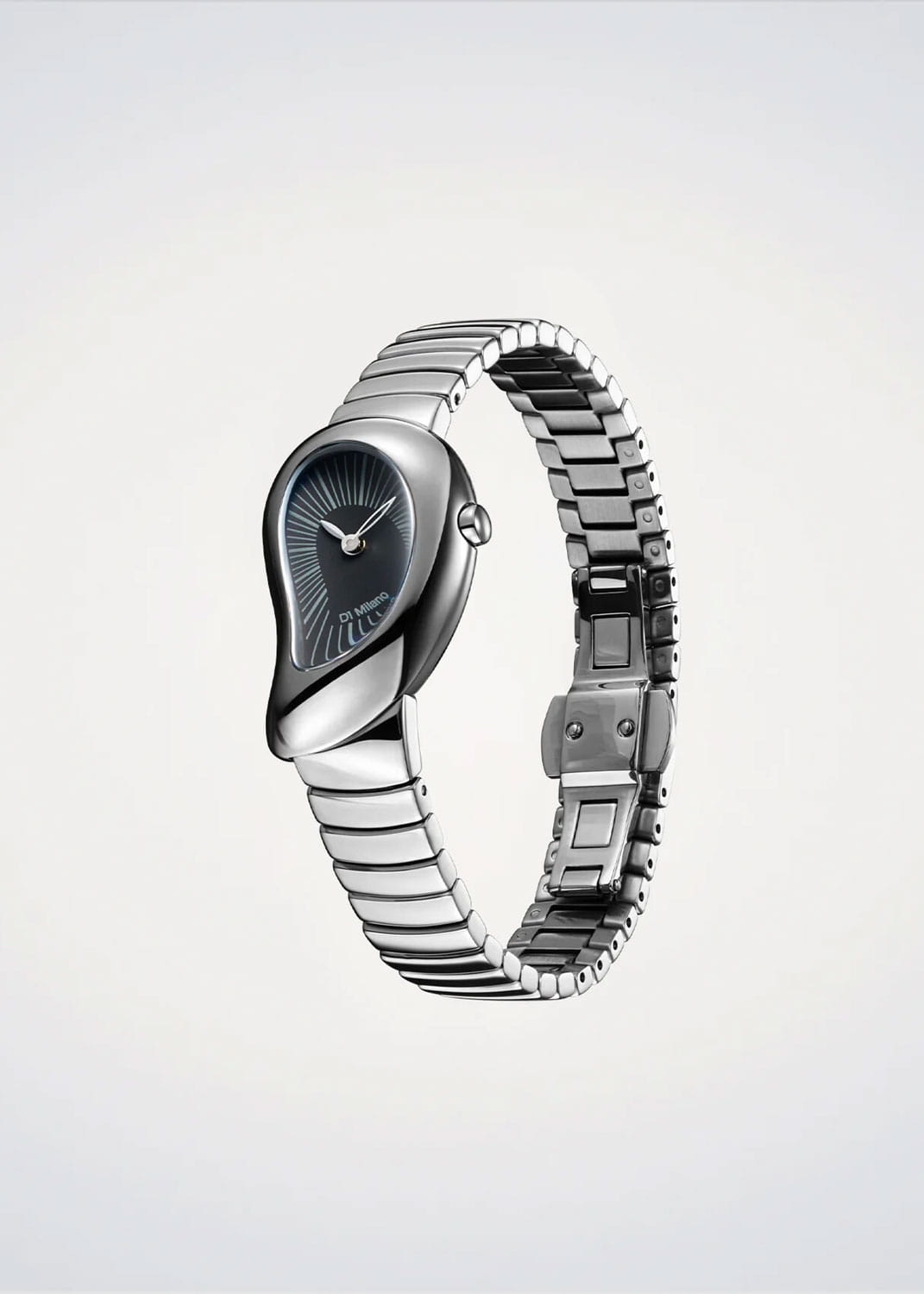 Женские кварцевые часы D1 Milano Drop DRBL01 — это стильное сочетание элегантности и современного дизайна. Стальной корпус в форме капли выполнен из нержавеющей стали серебристого цвета, диаметром 23 мм, что придаст образу элегантности и надежности. Изысканный циферблат с метками в виде штрихов придает модели особый блеск. Циферблат защищен сапфировым стекломСапфировое стеклоПрочный и надёжный материал из кристалла сапфира синтетического происхождения, характеризующийся особой твёрдостью и устойчивостью к царапинам и повреждениям. с антибликовым покрытиемАнтибликовое покрытиеСлой оксида металла в 0,13-0,3 микрон, благодаря которому стекло часов не бликует и не отражает свет. Антибликовое покрытие уменьшает отражение света в 10 раз, обеспечивая отличную читаемость показателей циферблата., обеспечивающий устойчивость к царапинам. Часы оснащены надежным кварцевым механизмом. Стальной браслет на застёжке-бабочке с кнопкамиЗастёжка "бабочка"Такой вид застёжки дополняется предохранителями, помогающими избежать случайного раскрытия браслета. Обладают изящным исполнением. , гарантирует комфортное и безопасное ношение. Класс водозащиты: 50 метров позволит защитить корпус от случайных брызг или капель дождя. Отличный выбор для тех, кто ценит утонченность и качество.