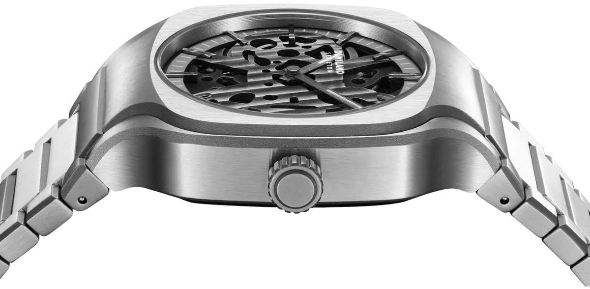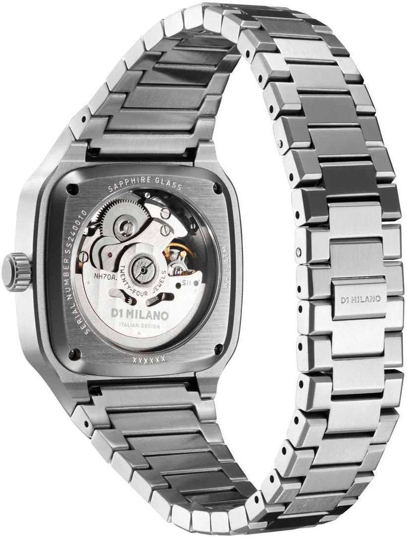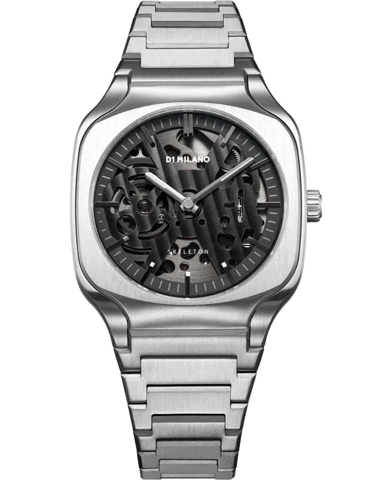 Часы D1 Milano SLBJ01 — это воплощение современной элегантности, вдохновленной классическими традициями. Эти механические часы с автоподзаводом впечатляют своим уникальным дизайном и высоким качеством исполнения. Квадратный корпус из стали 316L с размерами 37х37 мм и толщиной 11,3 мм дополнен прозрачной задней крышкой, закрепленной на 4 винтах, что позволяет любоваться скелетонизированным механизмом и частотой 21600 полуколебаний в час. Серый циферблат защищен сапфировым стекломСапфировое стеклоПрочный и надёжный материал из кристалла сапфира синтетического происхождения, характеризующийся особой твёрдостью и устойчивостью к царапинам и повреждениям. с антибликовым покрытием, а метки в виде штрихов добавляют дизайну лаконичности и изысканности. Часы оснащены браслетом из нержавеющей стали с раскладной застёжкойРаскладная застёжкаТакой тип застёжки используется только на браслетах из металла. Она никогда не раскрывается полностью, происходит разделение на 2 и более частей. Раскладывающая застёжка снизит вероятность потери часов к минимуму., обеспечивая надежность и комфорт при носке. Запас хода составляет 41 час, что делает их идеальным выбором для современных ценителей времени. Водозащита до 50WR гарантирует защиту от влаги в повседневных условиях. Эти итальянские часы представляют собой идеальное сочетание традиционного мастерства и инновационного подхода, воплощая в себе новый взгляд на классическую элегантность.