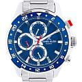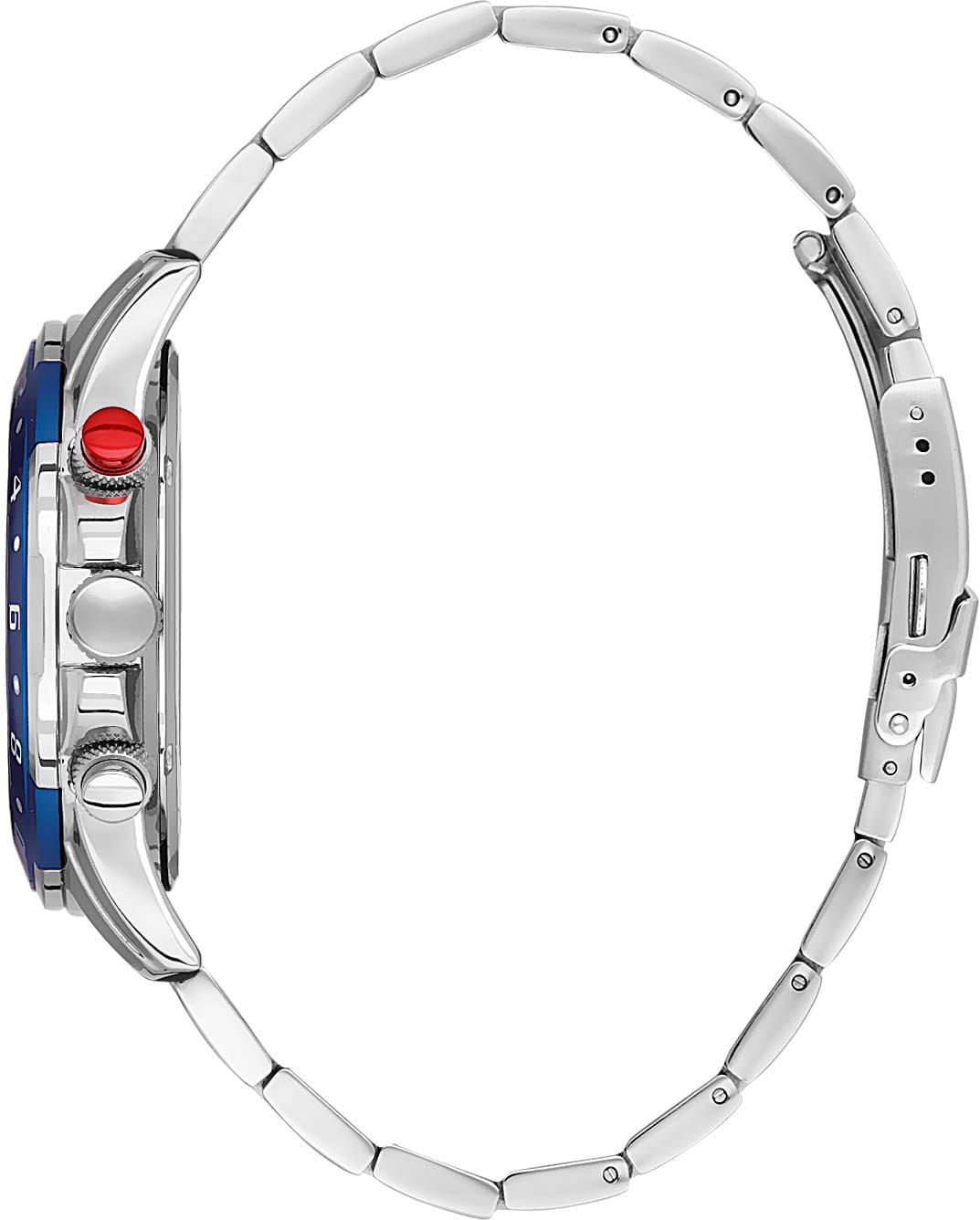 Мужские кварцевые часы Daniel Klein — это эффектный и функциональный аксессуар. Корпус диаметром 45 мм выполнен из нержавеющей стали. БезельБезельВнешний ободок, закрепляющий стекло. В спортивных часах так называется поворотное кольцо с делениями на циферблате, выполняет роль таймера – замеряет отрезки времени на шкале. Неподвижный безель – элемент декора. Однонаправленно вращающийся безель на дайверских часах позволяет фиксировать моменты погружения и выныривания на поверхность. с PVD-покрытиемPVDУльтратонкое покрытие наносится в технике вакуумного напыления, сочетает в себе нитрид титана особой прочности со слоем золота или оксида хрома. Несёт в себе декоративную или защитную функцию. изготовлен из алюминия. Циферблат синего цвета оформлен штрихами, стрелками и секундной шкалой по краю циферблата (шаг 0,2 сек). Присутствуют отдельные индикаторы дня недели и даты, а также 24-часовой формат времени. Стрелки с люминесцентным покрытиемЛюминесцентное покрытиеПозволяет считывать показания времени в темноте. Производители наносят на стрелки, часовые индексы, безель или поверхность циферблата светонакопительный состав, дающий холодное свечение., обеспечивающим хорошую читаемость в темноте. Циферблат защищён минеральным стекломМинеральное стеклоМинеральное стекло представляет собой искусственно выращенный минерал кварца. Такое стекло отличается особой устойчивостью к повреждениям и царапинам. Уступает по некоторым качествам сапфировому стеклу.. Заводная головка с защитой повышает надёжность. Часы оснащены частично полированным и сатинированным стальным браслетом на раскладной застёжкеРаскладная застёжкаТакой тип застёжки используется только на браслетах из металла. Она никогда не раскрывается полностью, происходит разделение на 2 и более частей. Раскладывающая застёжка снизит вероятность потери часов к минимуму.. Водонепроницаемость 50 м позволяет использовать часы в повседневных условиях. Идеальный выбор для тех, кто ценит турецкое качество и универсальный дизайн.