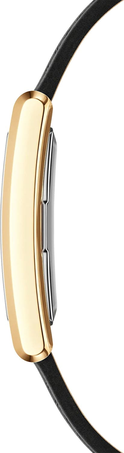 Daniel Wellington Bound Black Crocodile Gold — женские наручные часы с утончённым скандинавским акцентом. Прямоугольный корпус из нержавеющей стали с PVDPVDУльтратонкое покрытие наносится в технике вакуумного напыления, сочетает в себе нитрид титана особой прочности со слоем золота или оксида хрома. Несёт в себе декоративную или защитную функцию.-покрытием создаёт изящное сияние и подчёркивает строгие линии дизайна. Белый циферблат с минималистичными индексами выполнен в характерной для DW лаконичной эстетике, сохраняя универсальность и элегантность. Модель оснащена точным кварцевым механизмом и защищена минеральным стекломМинеральное стеклоМинеральное стекло представляет собой искусственно выращенный минерал кварца. Такое стекло отличается особой устойчивостью к повреждениям и царапинам. Уступает по некоторым качествам сапфировому стеклу., которое обеспечивает стойкость к мелким царапинам. Часы комплектуются ремешком из натуральной кожи с фактурой «под крокодила», который фиксируется классической пряжкой. Эта модель удачно сочетает современный стиль и винтажные мотивы, становясь элегантным аксессуаром для повседневных и вечерних образов.