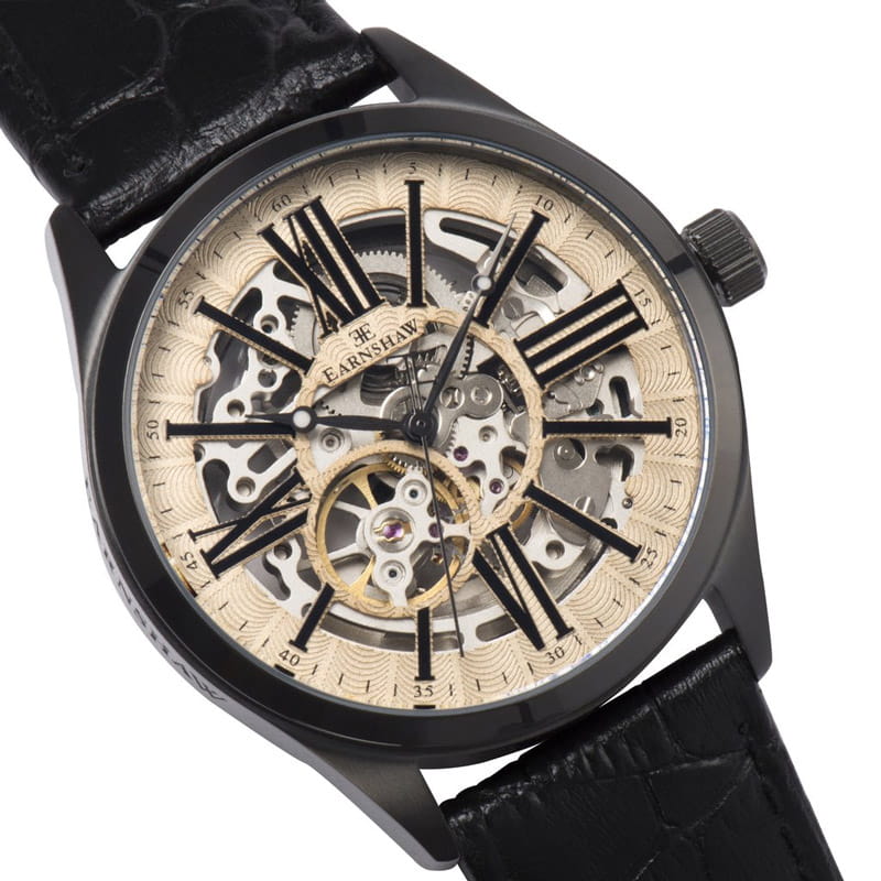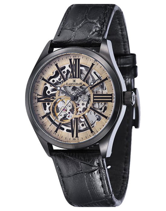 Мужские английские механические часы-скелетоны Earnshaw ES-8037-06, механический механизм (автоматический калибр) с высокой точностью. Класс водозащиты: 50 метров, позволит защитить корпус от случайных брызг или капель дождя. Корпус часов изготовлен из стали, цвета.