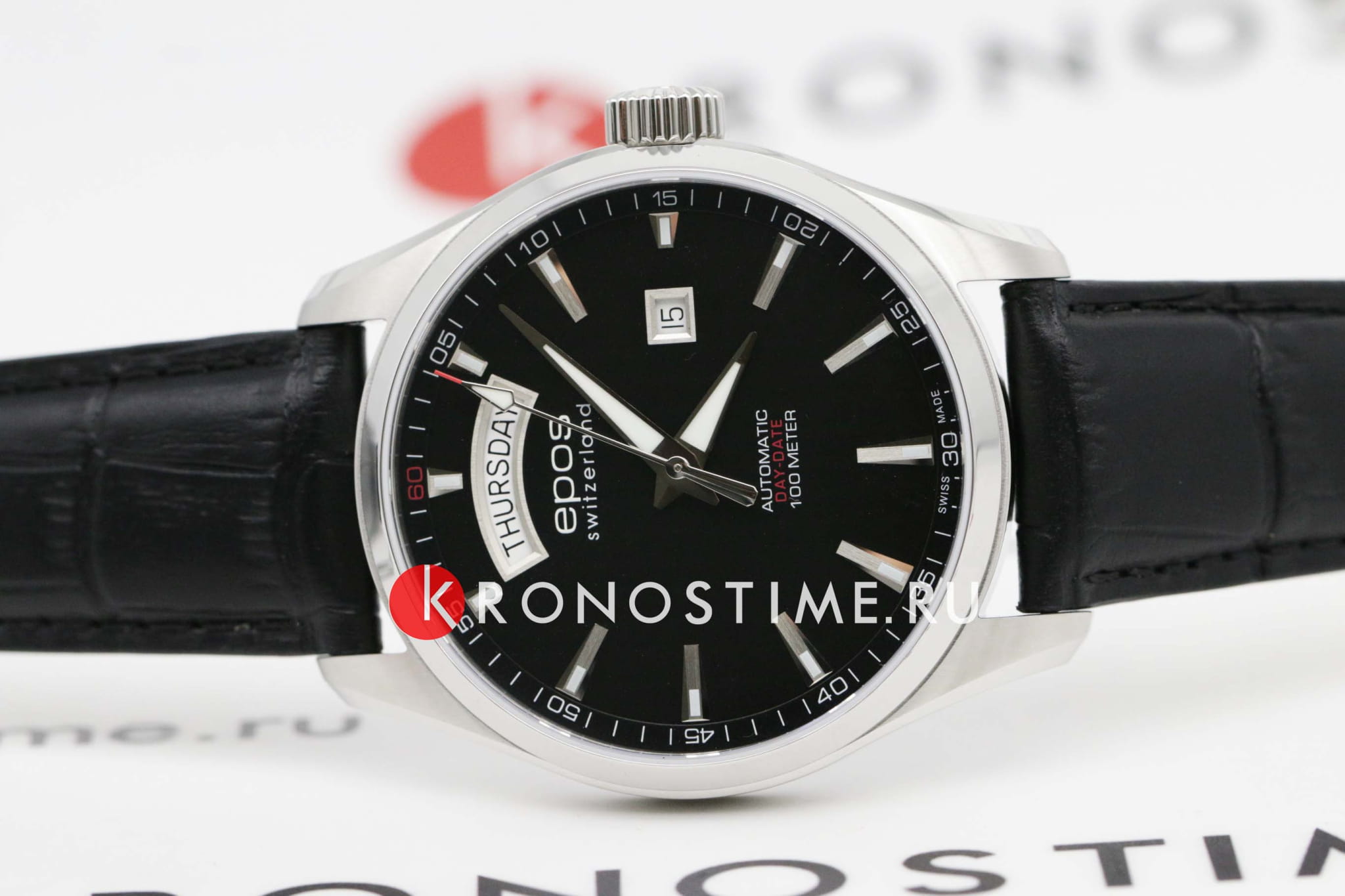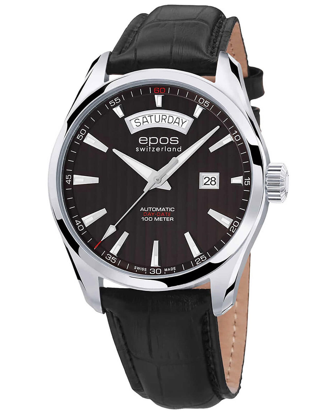 Мужские швейцарские механические наручные часы Epos Sportive 3402.142.20.15.25, механический механизм (автоматический калибр) с высокой точностью. Сапфировое стеклоСапфировое стеклоПрочный и надёжный материал из кристалла сапфира синтетического происхождения, характеризующийся особой твёрдостью и устойчивостью к царапинам и повреждениям. устойчивое к появлению царапин, обладающее высокой прозрачностью. Класс водозащиты: 100 метров, позволит плавать, нырять и заниматься другими водными видами спорта. Корпус часов изготовлен из стали. Кожаный ремешок на стандартной застёжке. Прозрачная задняя крышка. Стрелки и метки с люминесцентным покрытиемЛюминесцентное покрытиеПозволяет считывать показания времени в темноте. Производители наносят на стрелки, часовые индексы, безель или поверхность циферблата светонакопительный состав, дающий холодное свечение.. Индикация числа, дня недели. Механизм часов декорирован.