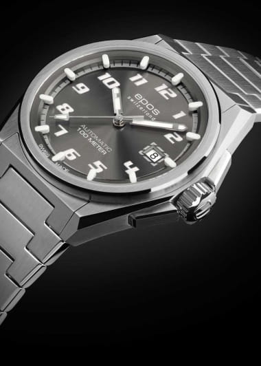 Мужские механические часы с автоподзаводом Epos из коллекции Sportive — это стильный и надёжный аксессуар с швейцарским качеством. Корпус диаметром 41 мм и толщиной 11 мм выполнен из нержавеющей стали 316L. Циферблат чёрного цвета оформлен по технологии «солнечные лучи» (Sunray) и дополнен метками в виде штрихов и арабских цифр. Циферблат защищён сапфировым стекломСапфировое стеклоПрочный и надёжный материал из кристалла сапфира синтетического происхождения, характеризующийся особой твёрдостью и устойчивостью к царапинам и повреждениям.. Стрелки и объёмные метки с люминесцентным покрытиемЛюминесцентное покрытиеПозволяет считывать показания времени в темноте. Производители наносят на стрелки, часовые индексы, безель или поверхность циферблата светонакопительный состав, дающий холодное свечение., обеспечивающим отличную читаемость в темноте. Механизм — швейцарский калибр Sellita SW200 с запасом хода 38 часов. Окошко даты расположено в положении 3 часов. Завинчивающаяся коронка обеспечивает дополнительную защиту. Прозрачная задняя крышка позволяет наблюдать за работой механизма. Часы оснащены стальным браслетом на раскладной застёжкеРаскладная застёжкаТакой тип застёжки используется только на браслетах из металла. Она никогда не раскрывается полностью, происходит разделение на 2 и более частей. Раскладывающая застёжка снизит вероятность потери часов к минимуму.. Водонепроницаемость 100 м позволяет использовать часы для плавания и повседневного ношения. Гарантия — 24 месяца. Универсальный выбор для ценителя механики и спортивного стиля.
