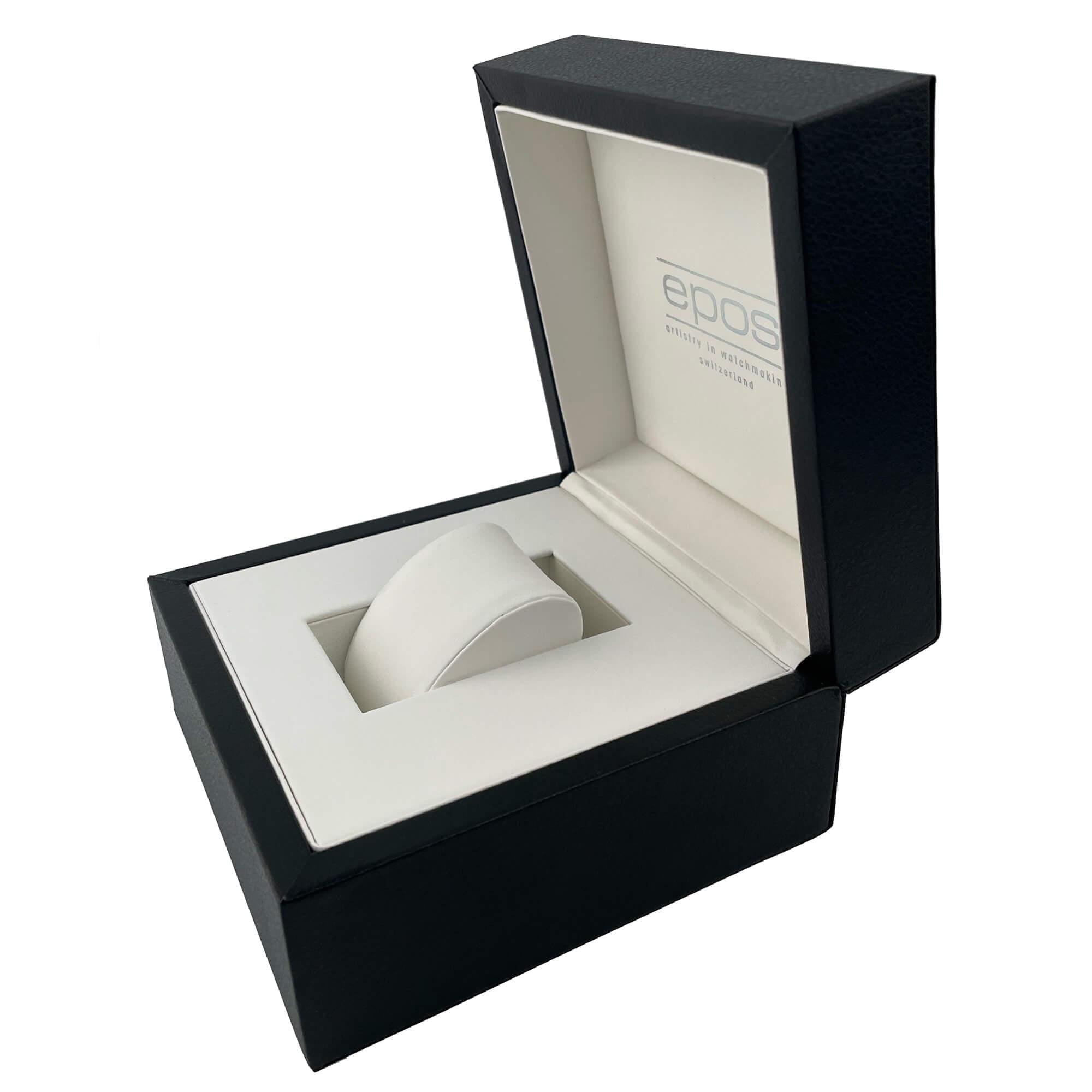 Epos 8002.702.24.26.34 — женская модель с утончённым классическим стилем и прямоугольным корпусом, выполненным из нержавеющей стали с PVD-покрытиемPVDУльтратонкое покрытие наносится в технике вакуумного напыления, сочетает в себе нитрид титана особой прочности со слоем золота или оксида хрома. Несёт в себе декоративную или защитную функцию.. Черный циферблат оформлен римскими индексами и утончённым узором «Clous de Paris», создающим игру света и подчёркивающим глубину дизайна. Защитную функцию выполняет сапфировое стеклоСапфировое стеклоПрочный и надёжный материал из кристалла сапфира синтетического происхождения, характеризующийся особой твёрдостью и устойчивостью к царапинам и повреждениям., стойкое к царапинам и сохраняющее прозрачность. В основе лежит швейцарский автоматический механизм, обеспечивающий стабильность и точность хода. Функции включают индикацию часов, минут и малую секундную шкалу, расположенную в позиции «6 часов». Стальной браслетс PVD-покрытиемPVDУльтратонкое покрытие наносится в технике вакуумного напыления, сочетает в себе нитрид титана особой прочности со слоем золота или оксида хрома. Несёт в себе декоративную или защитную функцию. на раскладной застёжкеРаскладная застёжкаТакой тип застёжки используется только на браслетах из металла. Она никогда не раскрывается полностью, происходит разделение на 2 и более частей. Раскладывающая застёжка снизит вероятность потери часов к минимуму., которая гармонично завершает строгий образ модели.