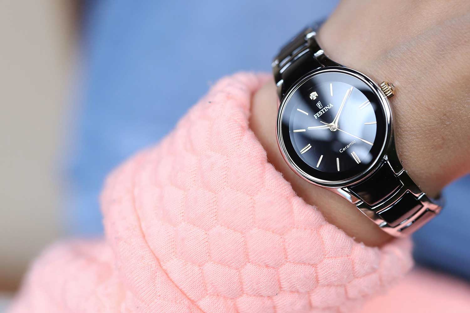 Яркий стиль и функциональность этих часов придутся по душе активной девушке. Кварцевый механизм с высокой точностью. Минеральное стеклоМинеральное стеклоМинеральное стекло представляет собой искусственно выращенный минерал кварца. Такое стекло отличается особой устойчивостью к повреждениям и царапинам. Уступает по некоторым качествам сапфировому стеклу. устойчивое к появлению царапин, обладающее высокой прозрачностью. Керамический неподвижный безельБезельВнешний ободок, закрепляющий стекло. В спортивных часах так называется поворотное кольцо с делениями на циферблате, выполняет роль таймера – замеряет отрезки времени на шкале. Неподвижный безель – элемент декора. Однонаправленно вращающийся безель на дайверских часах позволяет фиксировать моменты погружения и выныривания на поверхность.. Класс водозащиты: 50 метров, позволит защитить корпус от случайных брызг или капель дождя. Корпус часов изготовлен из нержавеющей стали. Браслет с керамическими вставками и с раскладной застёжкойРаскладная застёжкаТакой тип застёжки используется только на браслетах из металла. Она никогда не раскрывается полностью, происходит разделение на 2 и более частей. Раскладывающая застёжка снизит вероятность потери часов к минимуму..