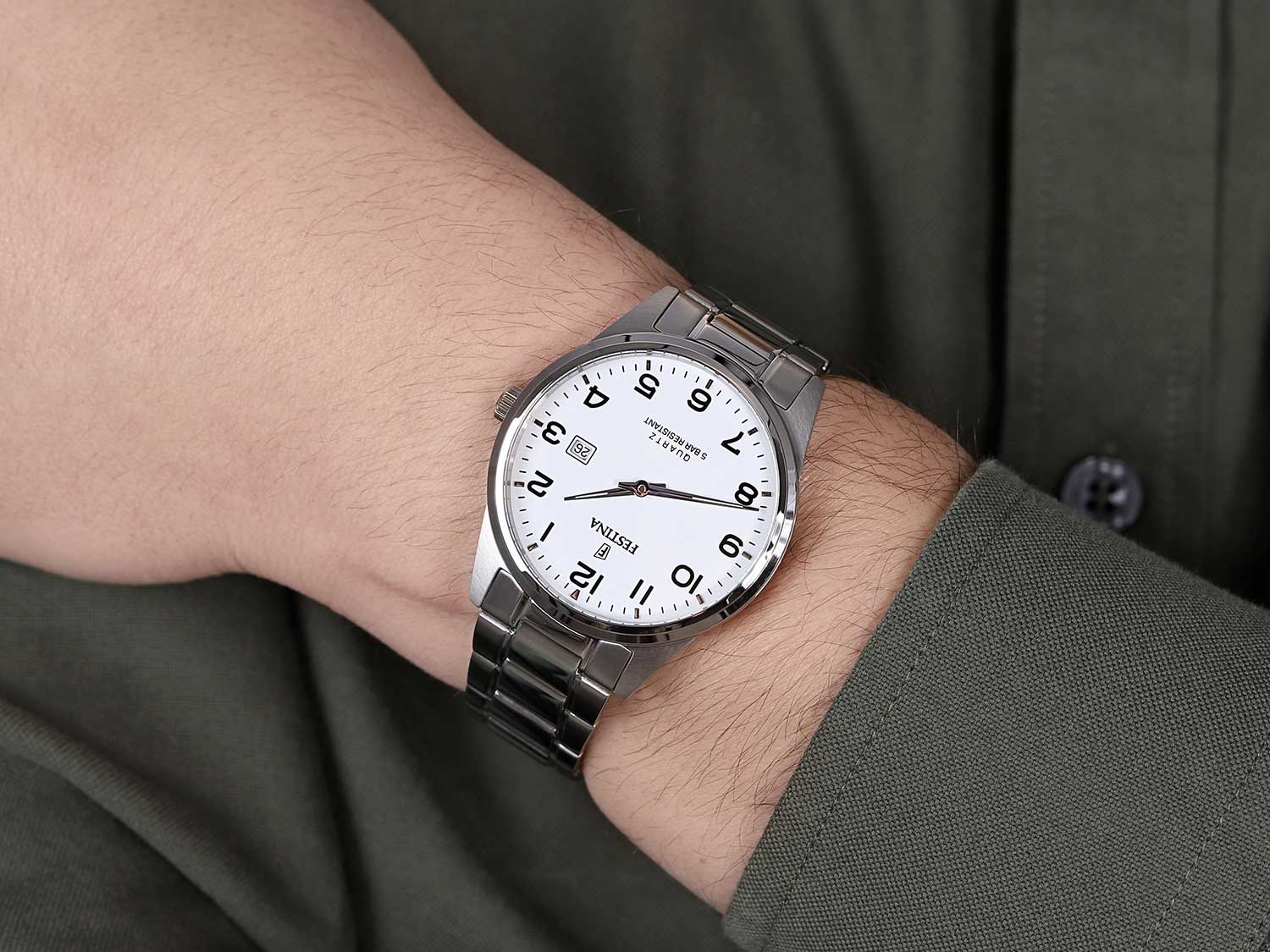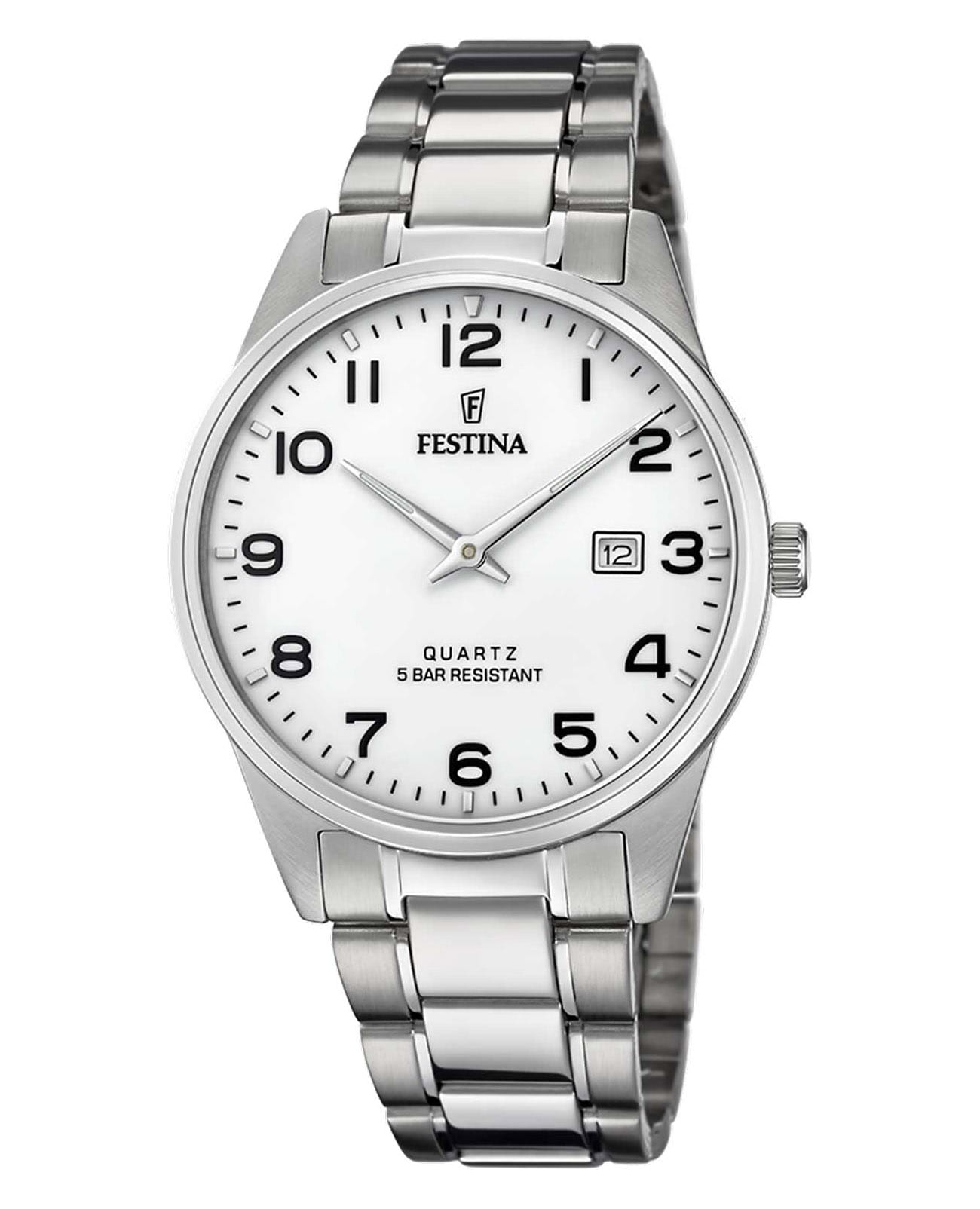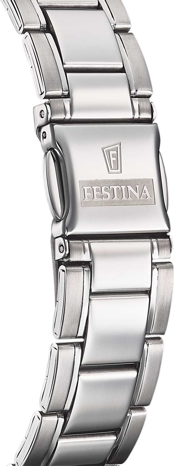 Наручные мужские часы с окошком даты Festina Acero Clasico F20511/1, кварцевый механизм с высокой точностью. Циферблат выполнен по технологии Sunray (солнечные лучи). Метки в виде арабских цифр. Окошко даты находится в положении 3 часа. Класс водозащиты: 50 метров, позволит защитить часы от случайных брызг воды