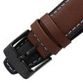 Часы-хронографХронографФункция позволяет измерять отрезки времени с особой точностью: часы, минуты, секунды. Верным признаком хронографа является наличие на циферблате 3 дополнительных окошек-счётчиков.. Кварцевый механизм с высокой точностью. Минеральное стеклоМинеральное стеклоМинеральное стекло представляет собой искусственно выращенный минерал кварца. Такое стекло отличается особой устойчивостью к повреждениям и царапинам. Уступает по некоторым качествам сапфировому стеклу. устойчивое к появлению царапин, обладающее высокой прозрачностью.  Класс водозащиты: 100 метров, позволит плавать, нырять и заниматься другими водными видами спорта. Стрелки и метки с люминесцентным покрытиемЛюминесцентное покрытиеПозволяет считывать показания времени в темноте. Производители наносят на стрелки, часовые индексы, безель или поверхность циферблата светонакопительный состав, дающий холодное свечение.. Корпус часов изготовлен из нержавеющей стали c PVD-покрытиемPVDУльтратонкое покрытие наносится в технике вакуумного напыления, сочетает в себе нитрид титана особой прочности со слоем золота или оксида хрома. Несёт в себе декоративную или защитную функцию.. Кожаный ремешок с классической застежкой.