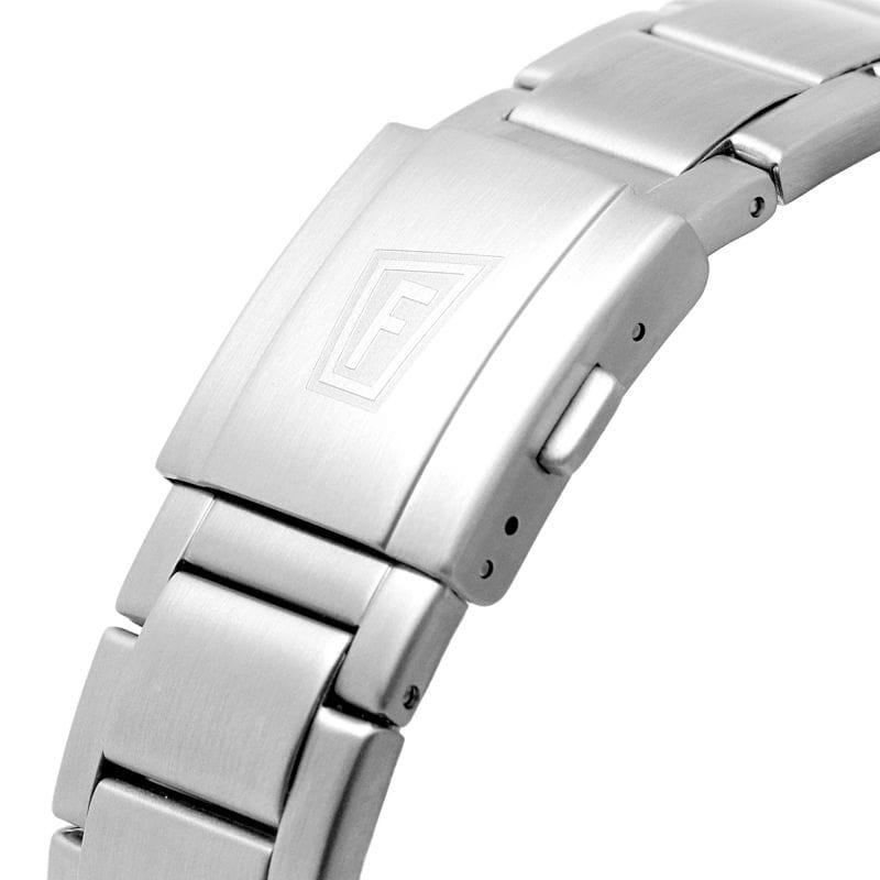 Часы-хронографХронографФункция позволяет измерять отрезки времени с особой точностью: часы, минуты, секунды. Верным признаком хронографа является наличие на циферблате 3 дополнительных окошек-счётчиков.. Кварцевый механизм с высокой точностью. Минеральное стеклоМинеральное стеклоМинеральное стекло представляет собой искусственно выращенный минерал кварца. Такое стекло отличается особой устойчивостью к повреждениям и царапинам. Уступает по некоторым качествам сапфировому стеклу. устойчивое к появлению царапин, обладающее высокой прозрачностью. Класс водозащиты: 100 метров, позволит плавать, нырять и заниматься другими водными видами спорта. Безель c PVD-покрытиемPVDУльтратонкое покрытие наносится в технике вакуумного напыления, сочетает в себе нитрид титана особой прочности со слоем золота или оксида хрома. Несёт в себе декоративную или защитную функцию.. Стрелки и метки с люминесцентным покрытиемЛюминесцентное покрытиеПозволяет считывать показания времени в темноте. Производители наносят на стрелки, часовые индексы, безель или поверхность циферблата светонакопительный состав, дающий холодное свечение.. Корпус часов изготовлен из нержавеющей стали. Браслет с раскладной застёжкойРаскладная застёжкаТакой тип застёжки используется только на браслетах из металла. Она никогда не раскрывается полностью, происходит разделение на 2 и более частей. Раскладывающая застёжка снизит вероятность потери часов к минимуму..
