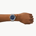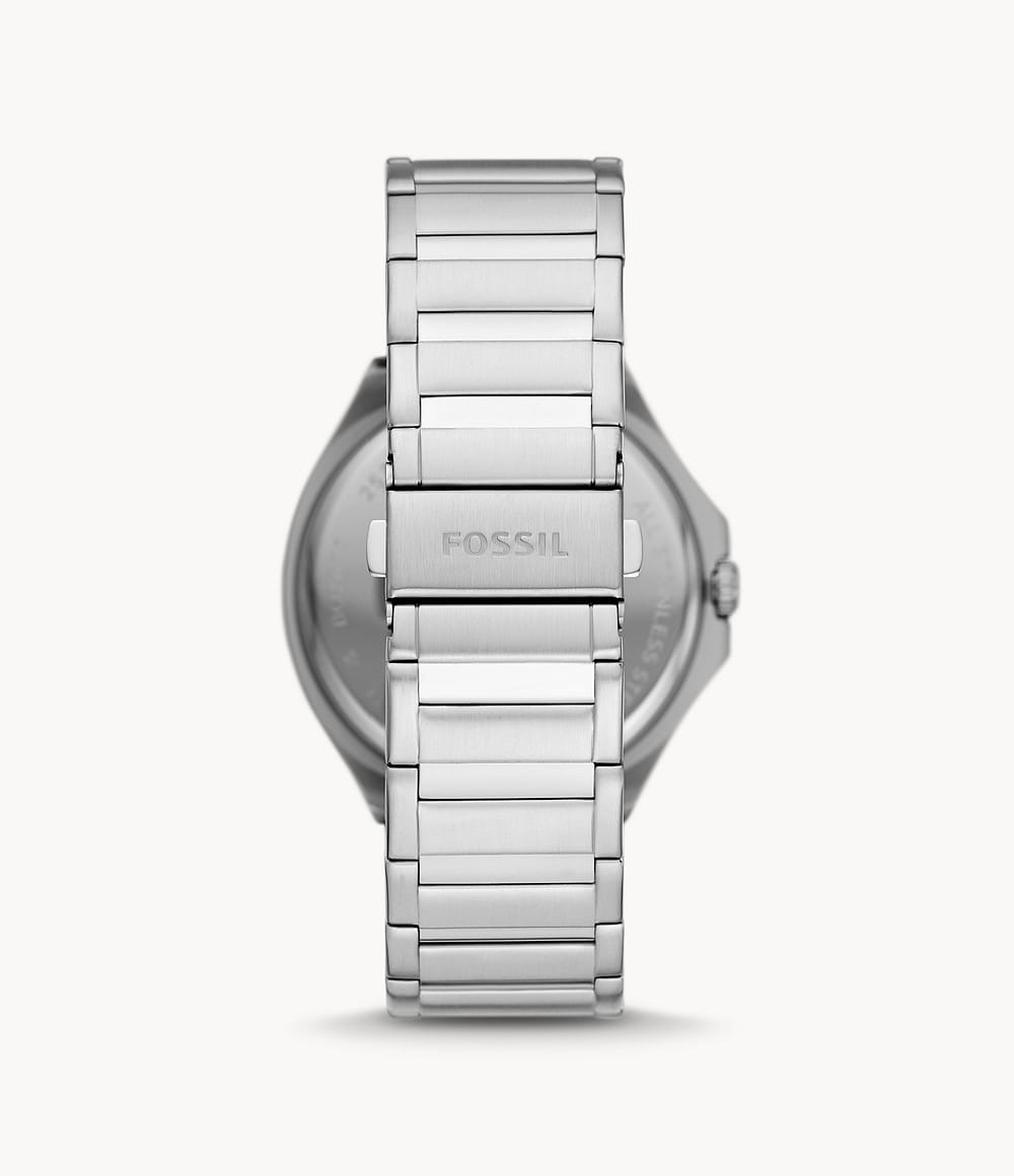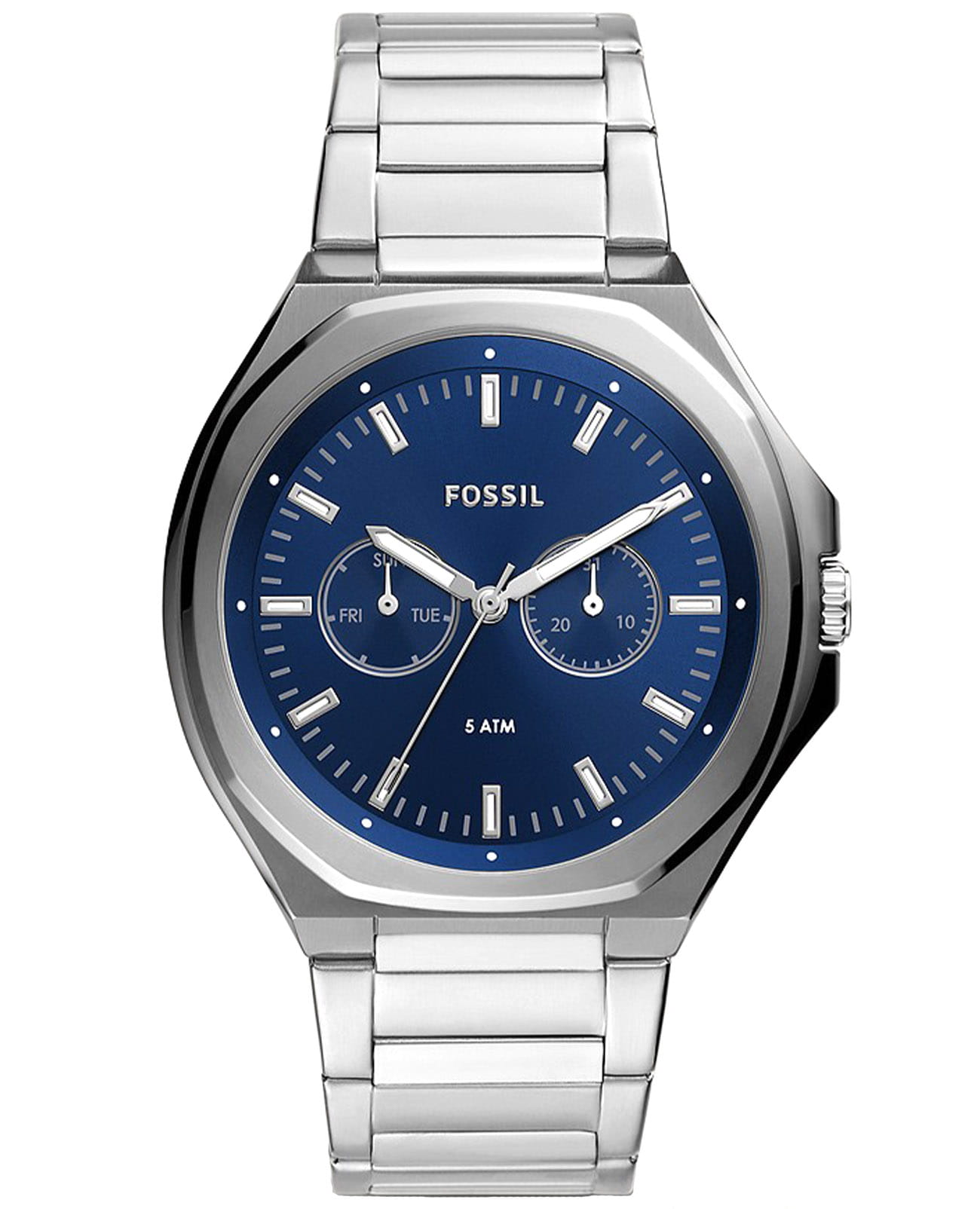 Мужские наручные часы с минеральным стекломМинеральное стеклоМинеральное стекло представляет собой искусственно выращенный минерал кварца. Такое стекло отличается особой устойчивостью к повреждениям и царапинам. Уступает по некоторым качествам сапфировому стеклу. Fossil Evanston BQ2610, кварцевый механизм с высокой точностью. Класс водозащиты: 50 метров, позволит защитить корпус от случайных брызг или капель дождя. Корпус часов изготовлен из стали. Стальной браслет на раскладной застёжкеРаскладная застёжкаТакой тип застёжки используется только на браслетах из металла. Она никогда не раскрывается полностью, происходит разделение на 2 и более частей. Раскладывающая застёжка снизит вероятность потери часов к минимуму..
