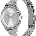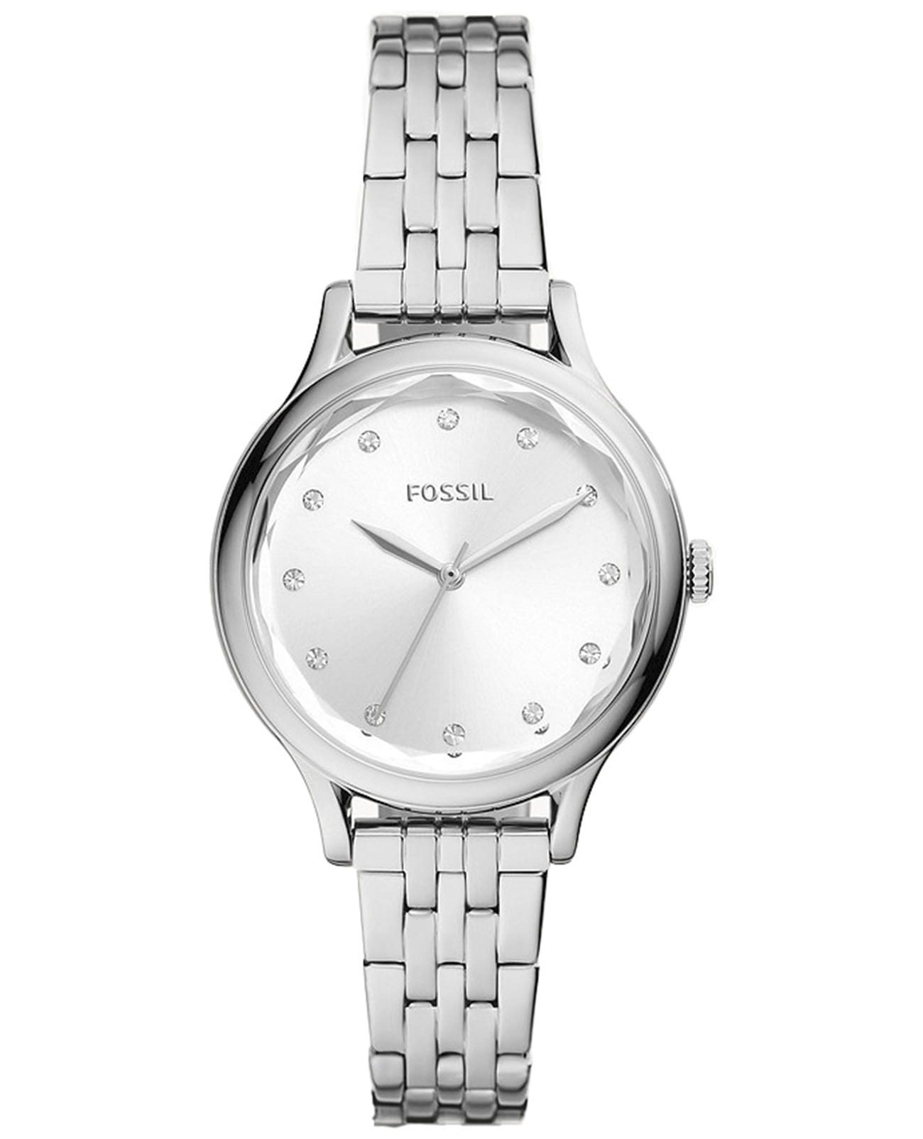 Женские наручные часы с минеральным стекломМинеральное стеклоМинеральное стекло представляет собой искусственно выращенный минерал кварца. Такое стекло отличается особой устойчивостью к повреждениям и царапинам. Уступает по некоторым качествам сапфировому стеклу. Fossil Laney BQ3861, кварцевый механизм с высокой точностью. Класс водозащиты: 50 метров, позволит защитить корпус от случайных брызг или капель дождя. Метки в виде кристаллов. Рифленая заводная головка. Браслет с раскладной застёжкойРаскладная застёжкаТакой тип застёжки используется только на браслетах из металла. Она никогда не раскрывается полностью, происходит разделение на 2 и более частей. Раскладывающая застёжка снизит вероятность потери часов к минимуму..
