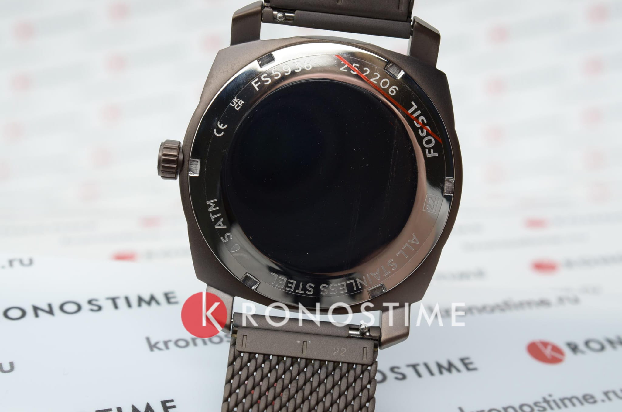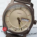 Мужские наручные часы на миланском браслете Fossil Machine FS5936, кварцевый механизм с высокой точностью. Класс водозащиты: 50 метров, позволит защитить корпус от случайных брызг или капель дождя. Корпус часов изготовлен из стали с IP-покрытиемIP-покрытиеМетод ионного напыления. Демонстрирует повышенную устойчивость к истиранию, окислению и химическим веществам. Под воздействием высокого давления и температуры около 1500°C молекулы металла надёжно соединяются с частицами корпуса часов. коричневого цвета. БезельБезельВнешний ободок, закрепляющий стекло. В спортивных часах так называется поворотное кольцо с делениями на циферблате, выполняет роль таймера – замеряет отрезки времени на шкале. Неподвижный безель – элемент декора. Однонаправленно вращающийся безель на дайверских часах позволяет фиксировать моменты погружения и выныривания на поверхность. с фактурной поверхностью обрамляет круглый корпус с рифленой заводной головкой. На циферблате расположены метки в виде штрихов и окошко даты и дня недели в положении 3 часа.