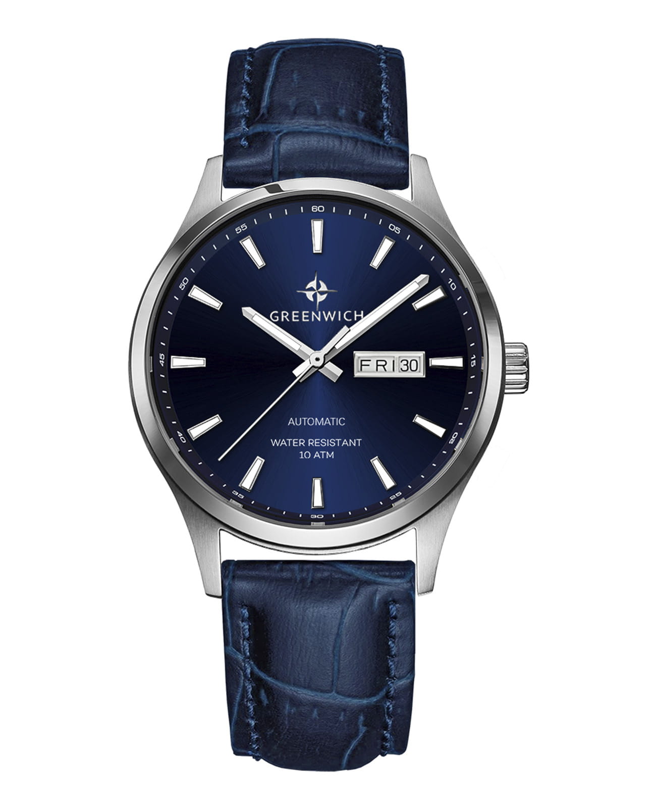 Мужские механические часы с кожаным ремешком Greenwich GW 054.16.36, механический механизм (автоматический калибр) с высокой точностью. Класс водозащиты: 100 метров, позволит плавать, нырять и заниматься другими водными видами спорта. Корпус часов изготовлен из стали, цвета.